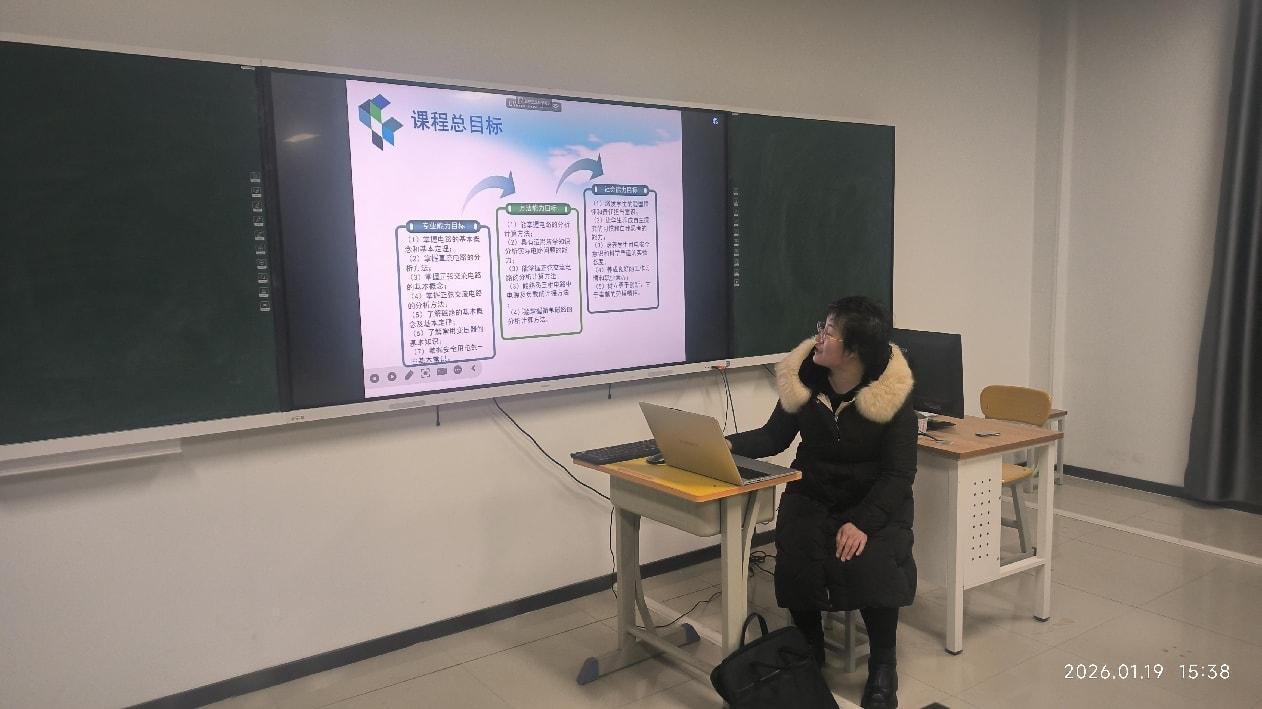 随后,在《电工技术》展示现场,曹钰老师围绕“专业能力、方法能力、社会能力”三维目标,系统介绍了项目化课程的设计思路与实施路径;《热力发电厂系统运行与分析》授课教师张琪汇报了“主蒸汽系统分析”“回热加热系统运行”等6个核心项目的开发与实践情况,展现了课程内容与产业需求的精准对接;《光伏电站设计与施工》授课教师许桂萍则以典型工程案例为依托,分享了从简单项目到复杂项目的全流程教学成果。