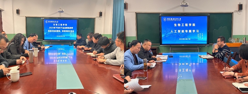 为深入推进“双师型”教师队伍建设,全面落实教育数字化战略,2026年2月27日,生物工程学院组织全体教师开展春季开学整训工作。全天分时段进行教师下企业锻炼暨国培省培项目交流、人工智能专题学习,以实践赋能教学、以科技驱动创新,为学院高质量发展蓄势赋能。会议由生物工程学院副院长王洪亮主持。