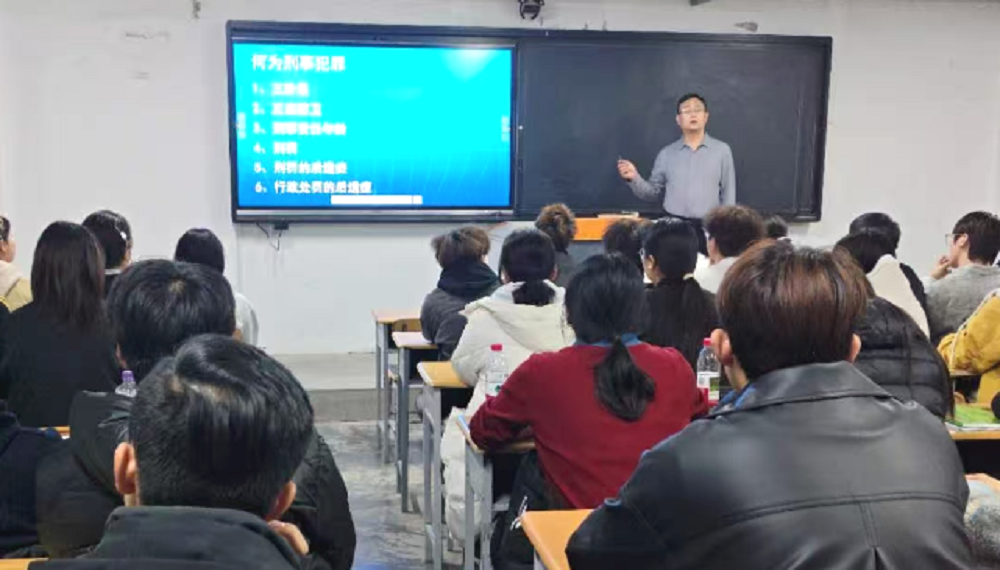 在法治教育环节,检察官以“案例说法,护航成长”为主题开展专题讲座,重点解读《民法典》《治安管理处罚法》《旅游法》《食品安全法》,深入剖析电信诈骗、校园贷、帮信罪、兼职陷阱、酒驾醉驾、网络侵权等典型风险,引导学生知敬畏、守底线。班会现场还发放《大学生常见刑事风险速查表》,通过知识复盘与互动答疑,进一步强化法治意识。