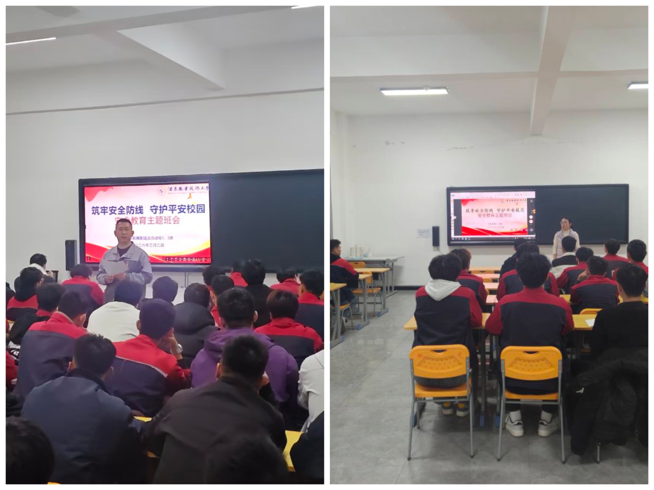 春回校园,生机盎然。为引导学生迅速调整状态,增强安全防范意识,营造平安、有序、和谐的校园氛围,3月1日至3日,机电工程学院聚焦“收心教育、安全警示、成长护航”三个模块,组织全体学生召开“开学第一课”系列班会,班会由各班班主任主持。