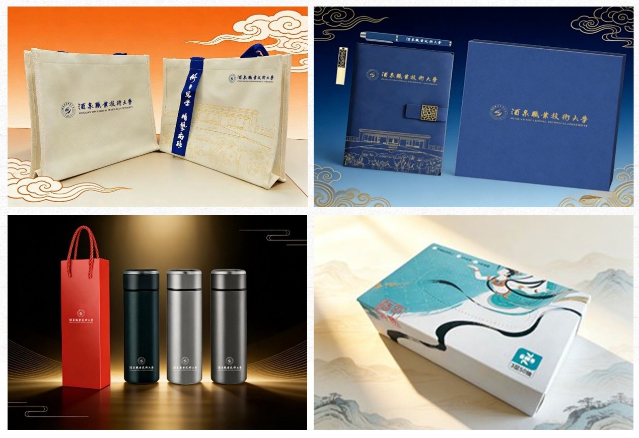 全系产品设计简约大气、工艺精细,选用实木、金属、毛毡、316不锈钢、纯棉等优质材质,分为校园文化标识类、丝路敦煌文化类、生活实用好物类,兼顾质感与性价比,既可满足师生自用、毕业纪念需求,也是校友馈赠、校企往来、校园礼赠的优选佳品,实现了实用性、艺术性与纪念性的有机统一。