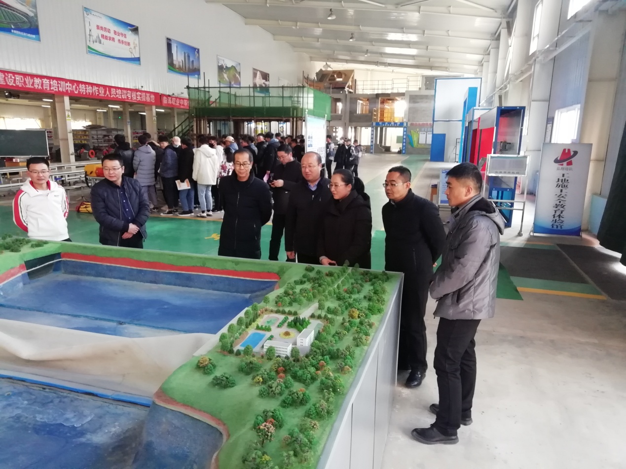 贾汝锟一行还参观了学校工科实训中心和校史馆,实地查看我校实验实训设施建设情况,重点了解了土木水利类教学设备运行管理、实训教学开展等办学基本情况,详细了解了学校历史沿革、发展脉络、办学成效以及校园文化建设等。