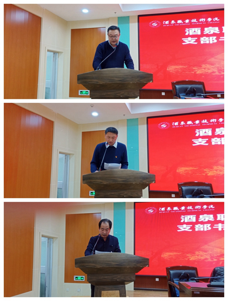 会上,传达学习了全省2020年度党委(党组)书记抓基层党建工作述职评议考核大会主要精神、甘肃省委教育工委新时代甘肃省高校党建“对标争先”创建培育单位名单和中共酒泉市委关于命名2020年党支部建设标准化“样板党支部”的通知等文件精神。