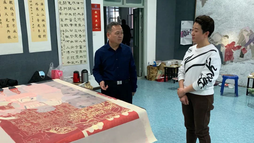 学校党委委员、副校长王立智与指导教师高丽娟交流探讨