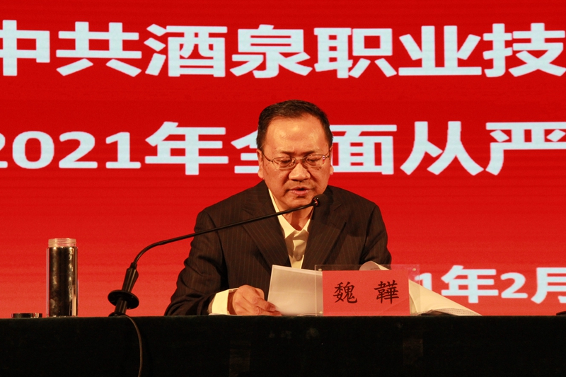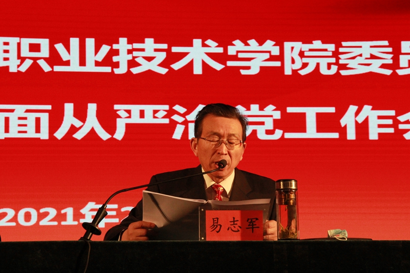 要闻快递 > 正文为深入学习贯彻十九届五中全会精神、习近平总书记在十九届中纪委五次全会上的重要讲话精神,认真落实中纪委和省市纪委全会精神,全面总结2020年全面从严治党工作,分析形势,安排部署2021年重点工作。2月27日,学校党委召开2021年全面从严治党工作会议,进一步落实“两个责任”,加强党风廉政建设,充分发挥党建引领保障作用,为学校营造风清气正的发展环境,引导全校各级党组织和党员干部坚定政治方向,保持政治定力,确保“十四五”顺利开局,为实现“双高”建设目标提供坚强保障。学校党委委员、全体中层干部和全体党员参加会议。