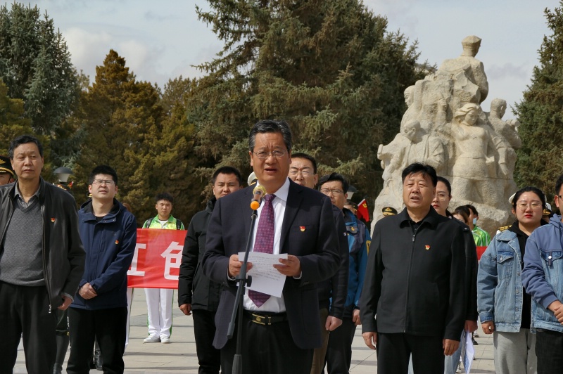 清明时节,哀思无限。为悼念革命烈士,传承先烈遗志,弘扬先烈精神, 4月2日,校“青马工程”骨干精英班和国旗班全体成员近一百人赴张掖市高台县中国工农红军西路军纪念馆开展了“学党史,强信念,跟党走”—— 传承红色基因·践行初心使命”清明祭扫主题团日活动。