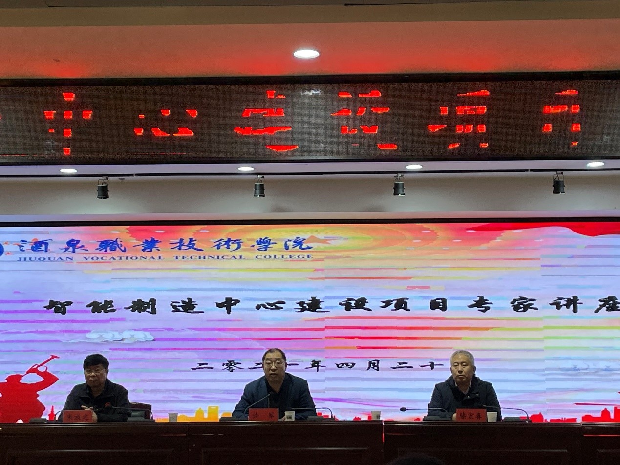 4月20日下午,酒泉职业技术学院邀请全国数控技能大赛总裁判长北京航空航天大学宋放之教授、南京工业职业技术大学藤宏春教授在学校图书馆四楼会议室举办智能制造中心建设专题讲座。学校党委委员、副校长许军教授出席了报告会。