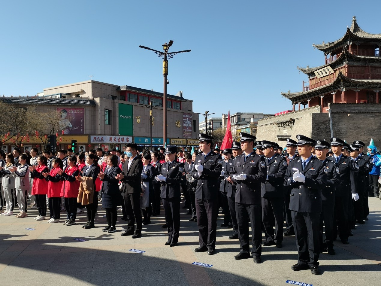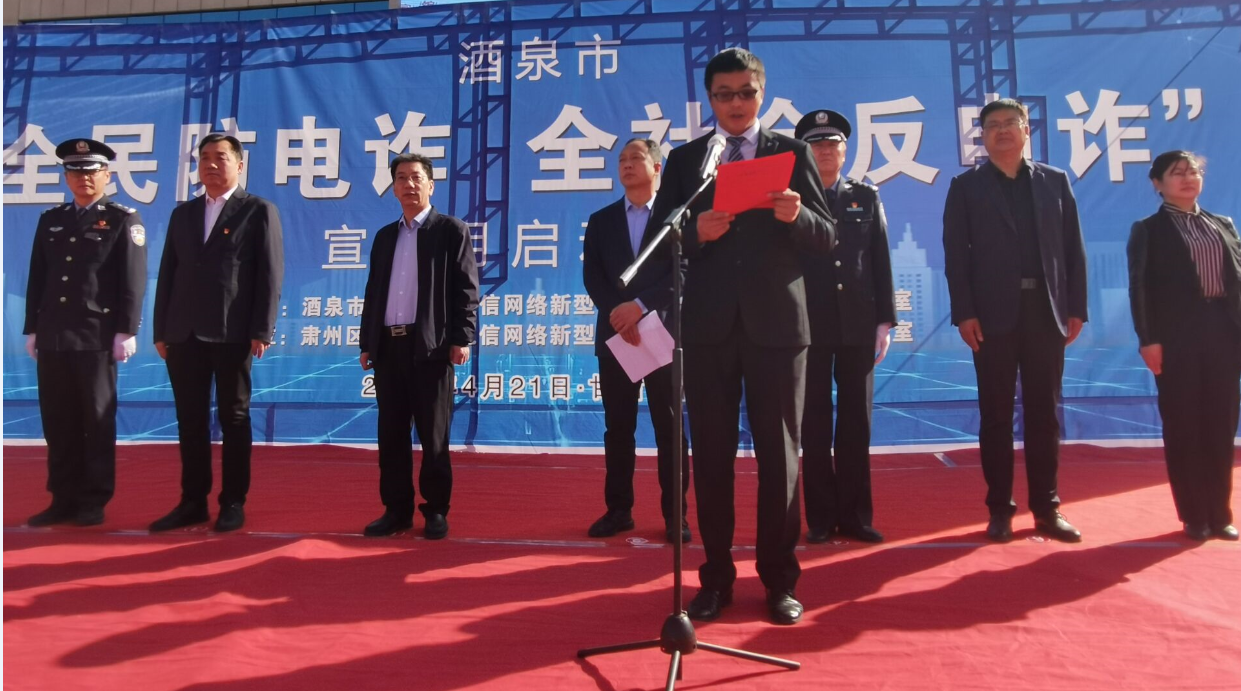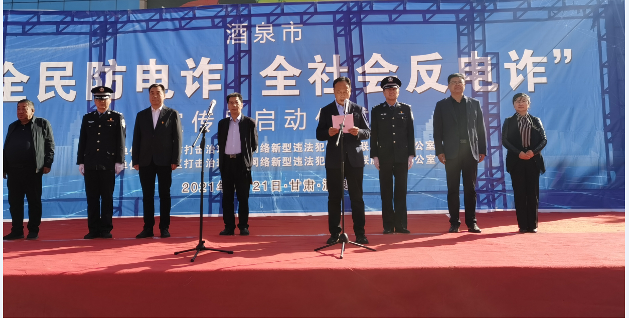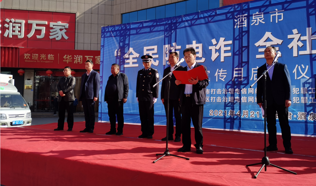 2021年4月21日上午9点30分,酒泉市“全民防电诈、全社会反电诈”宣传月启动仪式在肃州区东方广场举行。