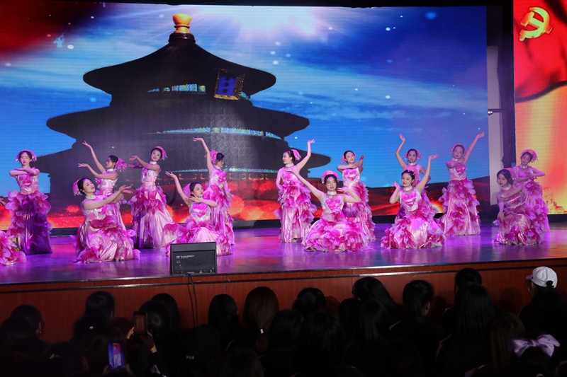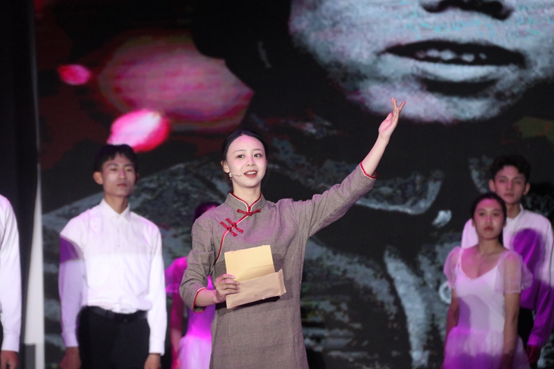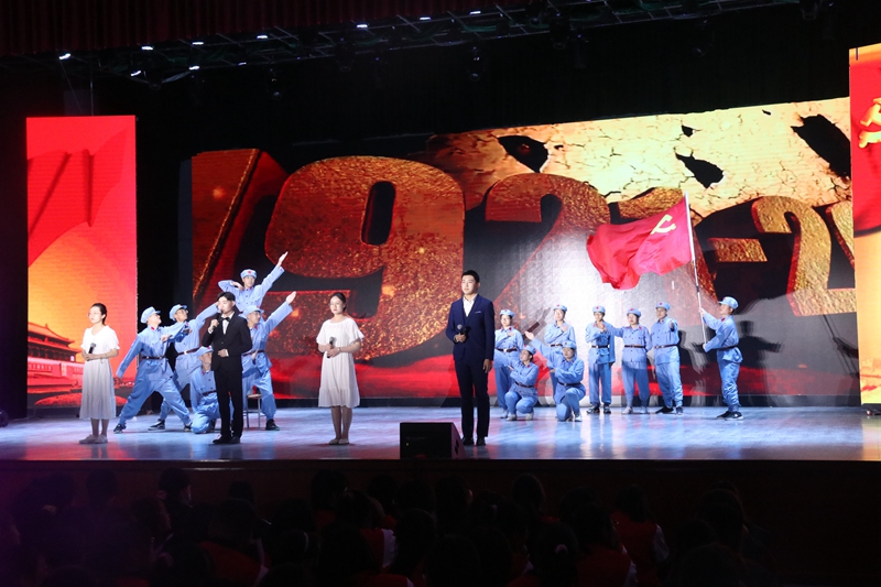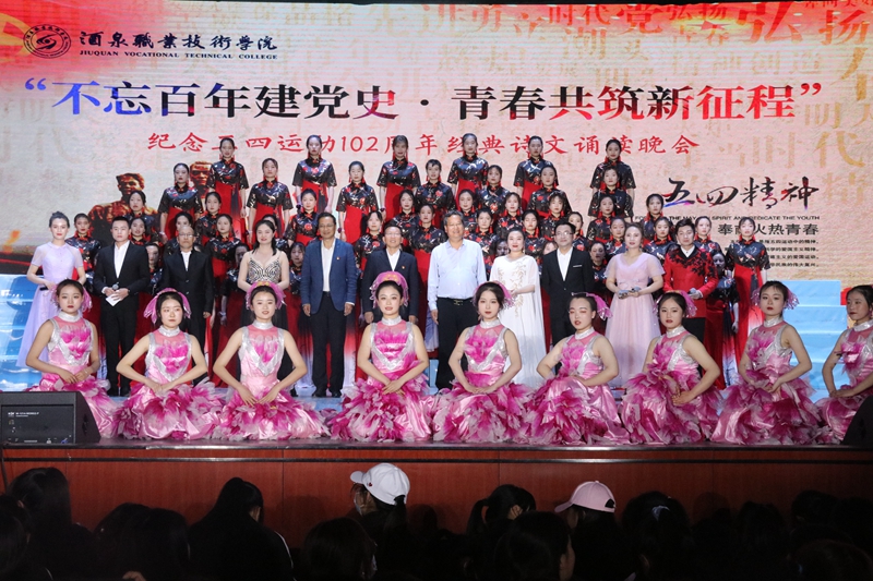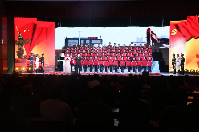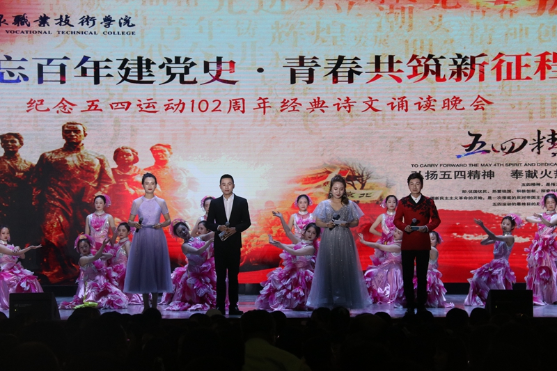 要闻快递 > 正文为热烈庆祝中国共产党成立100 周年,纪念五四运动102 周年,深化党史学习教育,教育引导全校广大青年厚植爱党、爱国情怀,坚定共产主义理想信念,5月6日晚,学校举办“不忘百年建党史·青春共筑新征程”纪念五四运动102周年经典诗文诵读晚会。学校党委班子成员、各基层党组织书记、副书记,党员代表、教师代表和学生代表共计近2000人观看了演出。