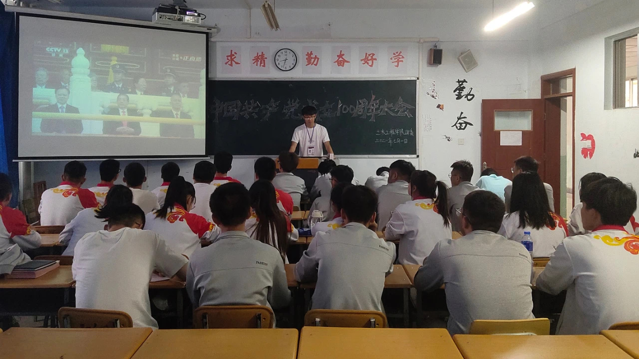 7月1日上午,庆祝中国共产党成立100周年大会在北京隆重举行。中共中央总书记、国家主席、中央军委主席习近平发表重要讲话。酒泉职业技术学院在家校领导,机关、教辅部门教师在经世楼录播厅、各二级学院教师在部门会议室集中收看庆祝中国共产党成立100周年大会直播。各二级学院学生在晚自习集中收看了录播。