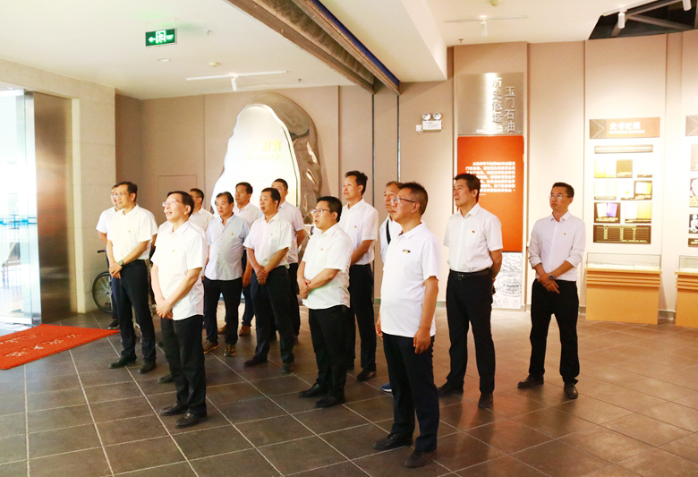 要闻快递 > 正文为认真贯彻落实习近平总书记在中央党史学习教育动员部署会议的重要讲话精神,扎实推动党史学习教育取得实效,积极传承红色精神、汲取奋进力量。7月6日,学校党员干部赴玉门油田展览馆参观学习,回顾中国石油工业摇篮的发展历史,缅怀以铁人王进喜为代表的中国石油人为国家发展无私奉献、艰苦创业的精神。党委书记、校长易志军,党委委员、副校长王长荣,党委委员、纪委书记、监察专员魏韡,党委委员、宣传统战部部长王金明参加了活动。