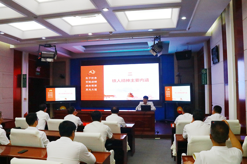 参观结束,荣获2021年全省高校大学生讲思政公开课高职组比赛特等奖的赵志杰同学在多功能展厅作了题为《中国精神是兴国强国之魂——中国精神是民族精神和时代精神的统一》的专题宣讲。他用扎实的理论积淀和生动娴熟的语言,结合建党百年、铁人精神,阐述了铁人精神的重要意义、主要内涵和赋予的时代价值,充分展现了新时代酒职学子“扎根大漠、荫泽苍生”的精神风貌。