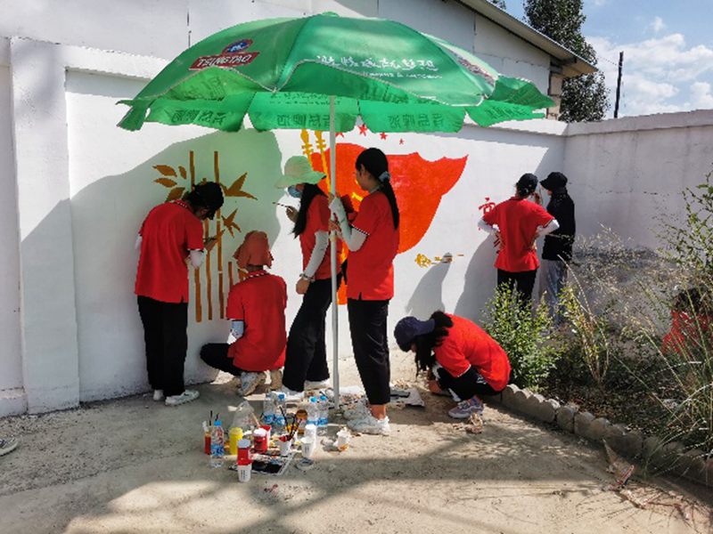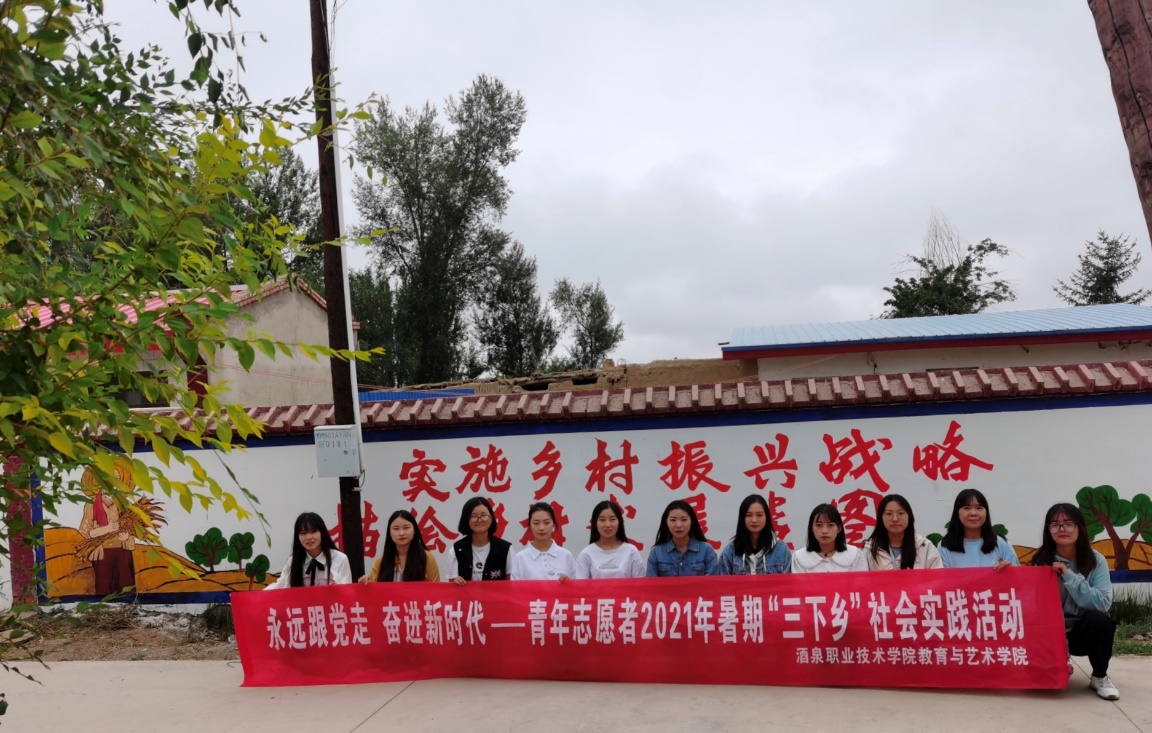 为深入学习贯彻习近平新时代中国特色社会主义思想和习近平总书记关于教育的重要论述,引导广大师生学党史、办实事,更加坚定理想信念、厚植爱国情怀、锤炼高尚品德、矢志实学实干,把学习成效转化为奉献国家、服务人民的实际行动,学校教育与艺术学院七色花志愿服务团队师生一行15人赴张掖市甘州区安阳乡开展了为期16天的“手绘文化墙、扮亮新农村”社会实践活动。
