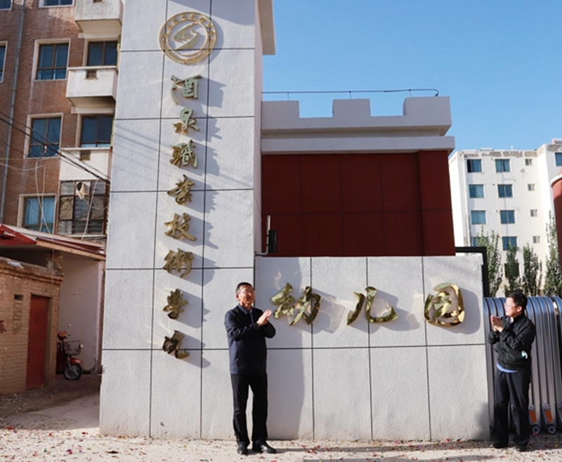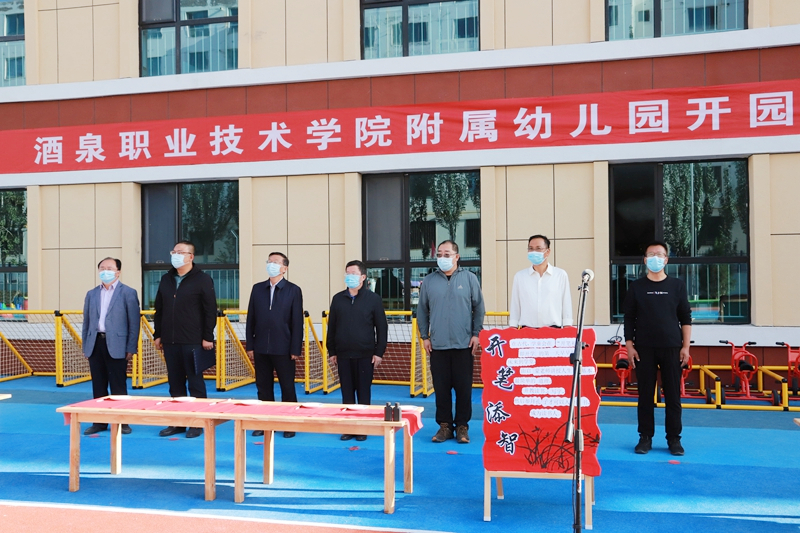 学校党委书记、校长易志军与市教育局副局长陶英江共同为酒泉职业技术学院附属幼儿园揭牌