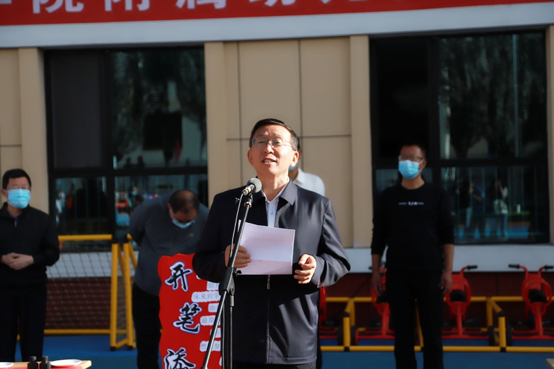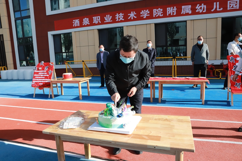 学校体育与健康学院舞龙舞狮协会带来的舞狮表演拉开了典礼的序幕。学校党委书记、校长易志军与市教育局副局长陶英江共同为酒泉职业技术学院附属幼儿园揭牌。易志军讲话希望附属幼儿园全体教职工,创新工作思路,切实加强对幼儿园的科学管理,背靠酒泉职院丰富的教学资源和美丽的山水校园,以创建省级示范幼儿园为目标,在完善教学硬件设施的同时,更要注重教育软环境的建设,探索富有自身特色的办园课程,不断提高教育质量和服务品质,更好地促进幼儿身心全面和谐的发展。
