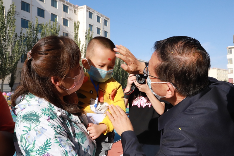 与会嘉宾依次为幼儿朱砂启智—开笔增智—击鼓传智,祈愿宝宝眼明心亮,礼润人生,从今启蒙。这些寓意深远的传统文化,寄寓着师者仁心的美好愿望,希望小朋友快乐成长、健康幸福,每天都像花儿一样开放,像阳光一样灿烂,开心快乐度过每一天。市教育局副局长陶英江为幼儿园切糕开园。