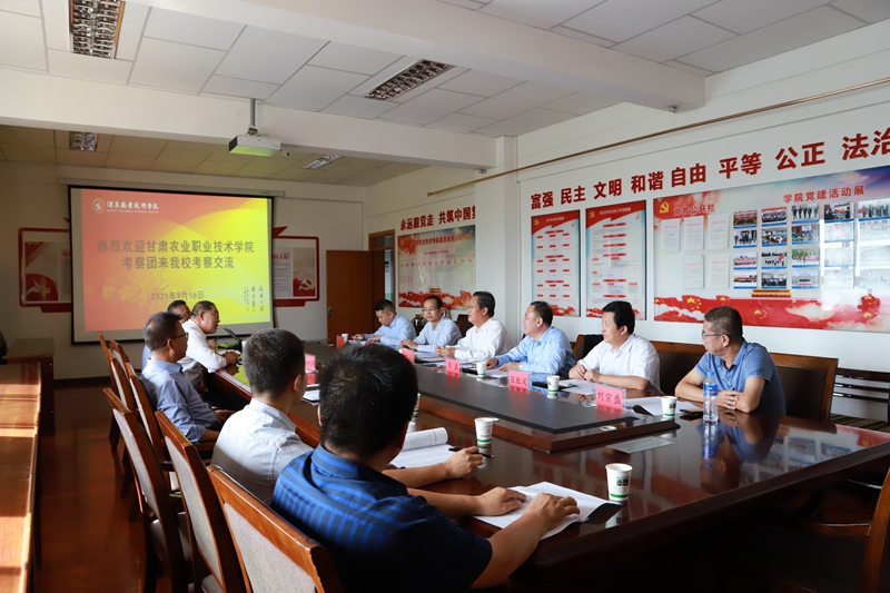 9月16-17日,甘肃农业职业技术学院党委副书记、院长薛仰全,党委副书记齐磊、纪委书记、监察专员王一平,副院长徐鉴民以及宣传部、产业管理处、教务处、后勤管理处、学生处以及相关部门负责人来校考察交流。学校党委班子全体成员陪同考察。
