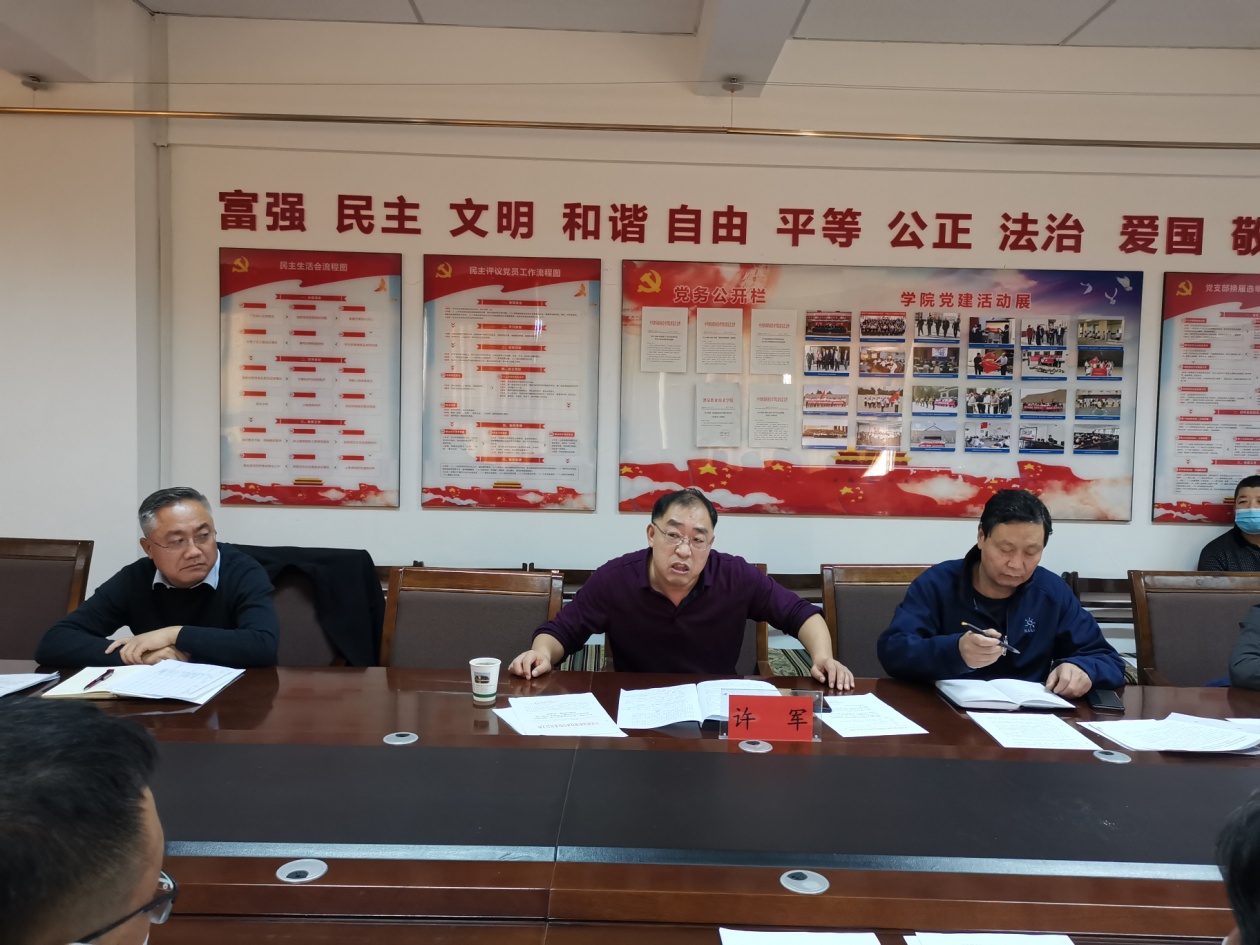 党委副书记许军强调,各党支部要认真学习贯彻习近平新时代中国特色社会主义思想,习近平总书记重要讲话、对教育工作所做的重要指示,持续做好学校党的政治建设工作和政治建设突出问题专项整治工作。要增强“四个意识”、坚定“四个自信”、做到“两个维护”,切实把学习成果转化为推进学校双高建设和创建职业教育本科学校上来。要落实好二级学院支委会和党政联席会议制度,充分发挥党支部书记“双带头人”作用,谋划好“三会一课”和主题当日活动,围绕“七个有力”建设内容,强化党组织的政治功能,履行政治责任,加强思想政治工作,加强师德师风建设,落实意识形态工作责任,围绕党建特色品牌创建、党建课题研究,结合专业建设、师资队伍建设、学院发展特色,认真总结提炼经验,积极探索特色亮点做法,深化新时代高校党建“双创”工作。(信息员:罗刚)