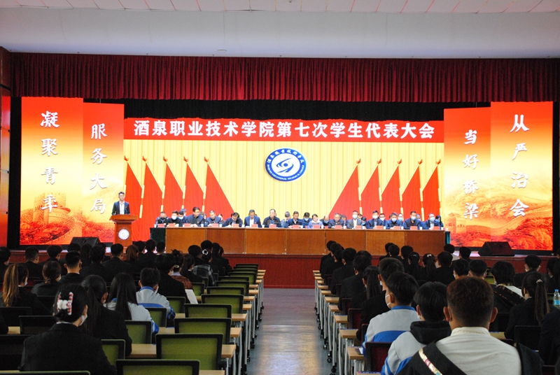 为贯彻落实《中华全国学生联合会章程》《关于推动高校学生会(研究生会)深化改革的若干意见》《普通高等学校学生(研究生)代表大会工作规定》等相关文件要求,11月16日,酒泉职业技术学院第七次学生代表大会在学校胡杨文化活动中心召开。学校党委书记、校长易志军、酒泉市少工委副主任、共青团酒泉市委青发部部长,酒泉市高校学生会组织深化改革评估工作组组长李玉环、党委副书记许军、党委委员、副校长王立智、党委委员、纪委书记、监察专员魏韡出席大会。
