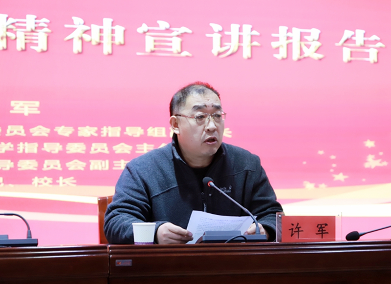 12月1日,由甘肃省大中小学思政课一体化建设指导委员会专家指导组副组长,甘肃省中等职业学校“思想政治”分教学指导委员会主任委员,酒泉市大中小学思政课一体化建设指导委员会副主任委员,学校党委书记、校长易志军作党的十九届六中全会精神宣讲报告。党委副书记许军主持报告会,党委委员、副校长王长荣,党委委员、纪委书记、监察专员魏韡出席报告会。