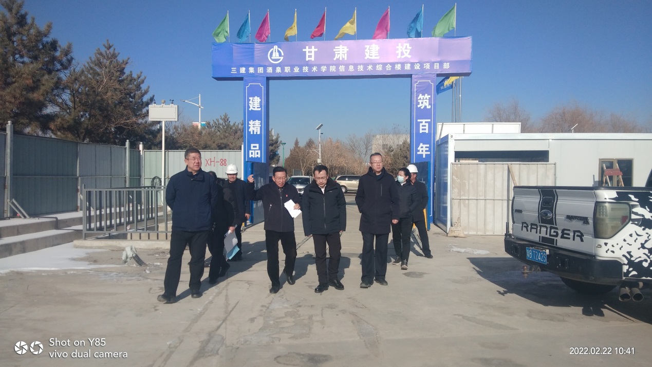为确保2021年专项债券资金使用精准和高效,2022年2月22日,财政部驻甘肃监管局副局长冯立松、财政部驻甘肃监管局五处处长李建华在酒泉市财政局党组书记、局长龚德平,酒泉市财政局党组成员、副局长秦玉娟等领导的陪同下来校对酒泉职业技术学院专项债券项目进行实地检查。(信息员:计划财务处 厉娥)
