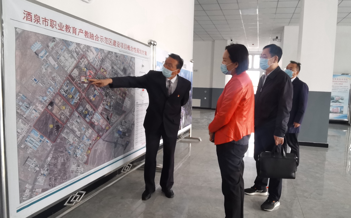 王晓玲一行实地查看了智能制造中心、工科实训中心等教学场地,详细了解了酒泉市职业教育产教融合示范区规划布局、建设方案、项目推进、学校实验实训条件建设运行及创建职业技术大学进展情况。王晓玲对我校取得的发展成就给予高度评价,她指出,学校要积极响应国家号召,顺应时代发展趋势, 围绕地方特色优势产业,深化产教融合,促进职业教育和产业人才需求精准对接,不断创新校企合作办学机制,实现产教深度融合,为服务地方经济发展发挥积极作用。