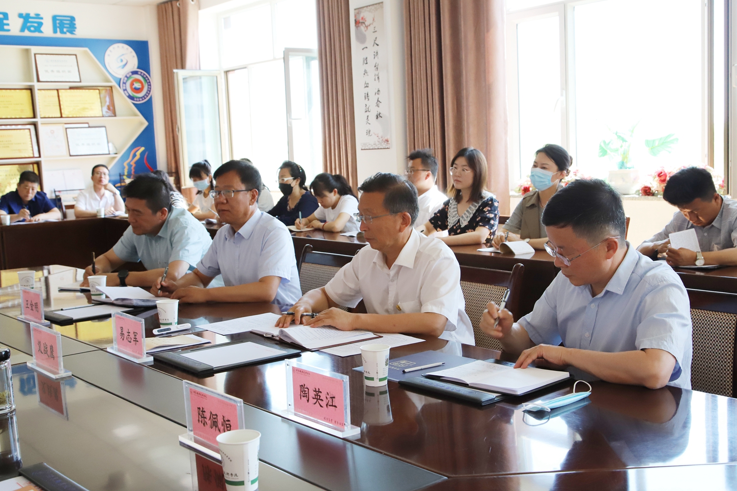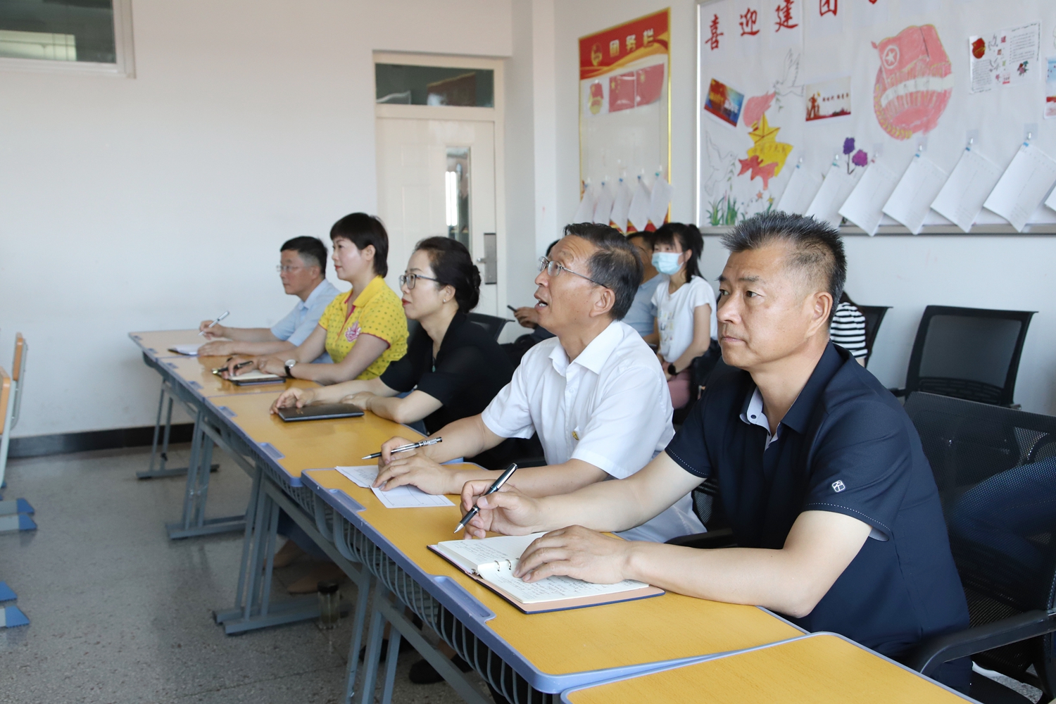 听课过程中,义战鹰认真对教学内容、教学过程等进行详细记录,关注学生的听课情况,并会意深思,对张老师的讲课表示赞赏和肯定。