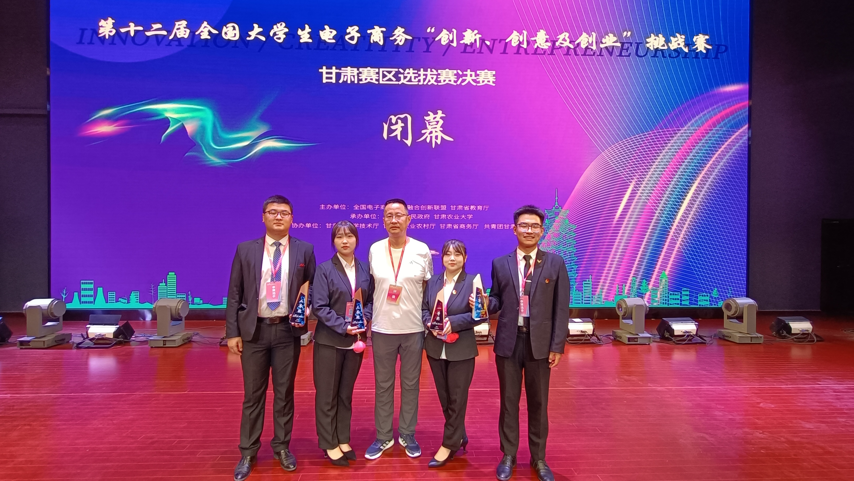 6月17日——19日,由甘肃农业大学和白银市人民政府联合承办的第十二届全国大学生电子商务“创新、创意及创业”挑战赛甘肃赛区省级选拔赛决赛在会宁干部学院顺利举行。我校旅游与烹饪学院王权朝老师、张美娇老师指导的项目《新乡旅时代——戈壁风凌石“微盆景”开发》和生物工程学院薛新花老师、张涛老师指导的项目《微牧宠物健康呵护着》荣获一等奖;医学院石晓岩老师、赵广东老师指导的项目《藏医小院》和新能源工程学院李玉霞老师、柳国琦老师指导的项目《分时组合式农村高效集热供暖装置》荣获二等奖。