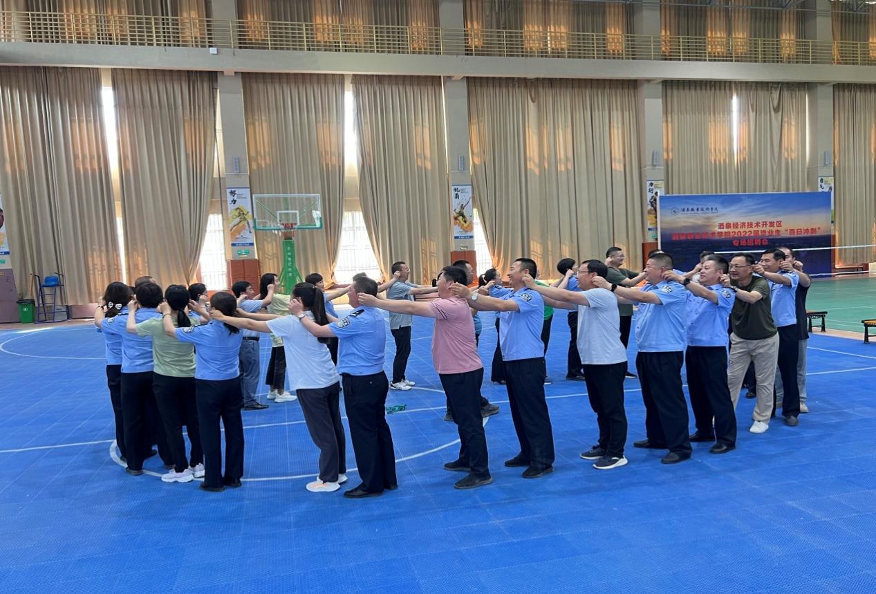 为切实发挥学校大学生法制教育基地作用,进一步提高大学生遵法、学法、守法、用法意识,弘扬法治精神,加强学校学工作人员与法制辅导员沟通交流。2022年6月27日,我校联合甘肃省酒泉监狱举办了“乘风破浪,凝心聚力”团建活动。学校党委委员、纪委书记、监察专员魏韡,甘肃省酒泉监狱党委委员、副监狱长、酒泉职业技术学院法治副校长陈虎冈出席,学校各二级学院副院长、甘肃省酒泉监狱法治辅导员共31人参加活动。团建活动由学工部主办,体育与健康学院承办。
