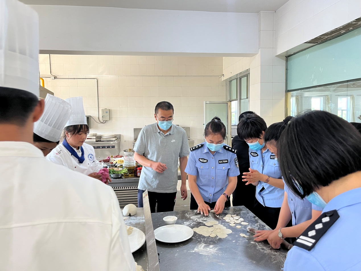 拓展活动结束后,全体人员又到烹饪酒店实训中心与烹饪专业的学生一起开展了包饺子活动。