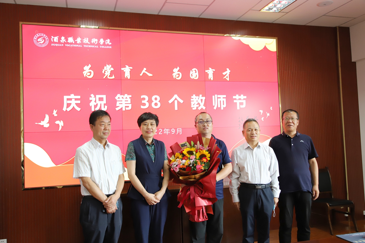 值此第38个教师节来临之际,9月2日市政府副市长靳巧荣来到我校慰问教师,向全体教师送上节日祝福、向优秀教师代表送上鲜花并表示祝贺。市教育局副局长张振江陪同慰问。学校党委委员、副校长王立智,党委委员、宣传统战部部长王金明等相关人员参加慰问活动。