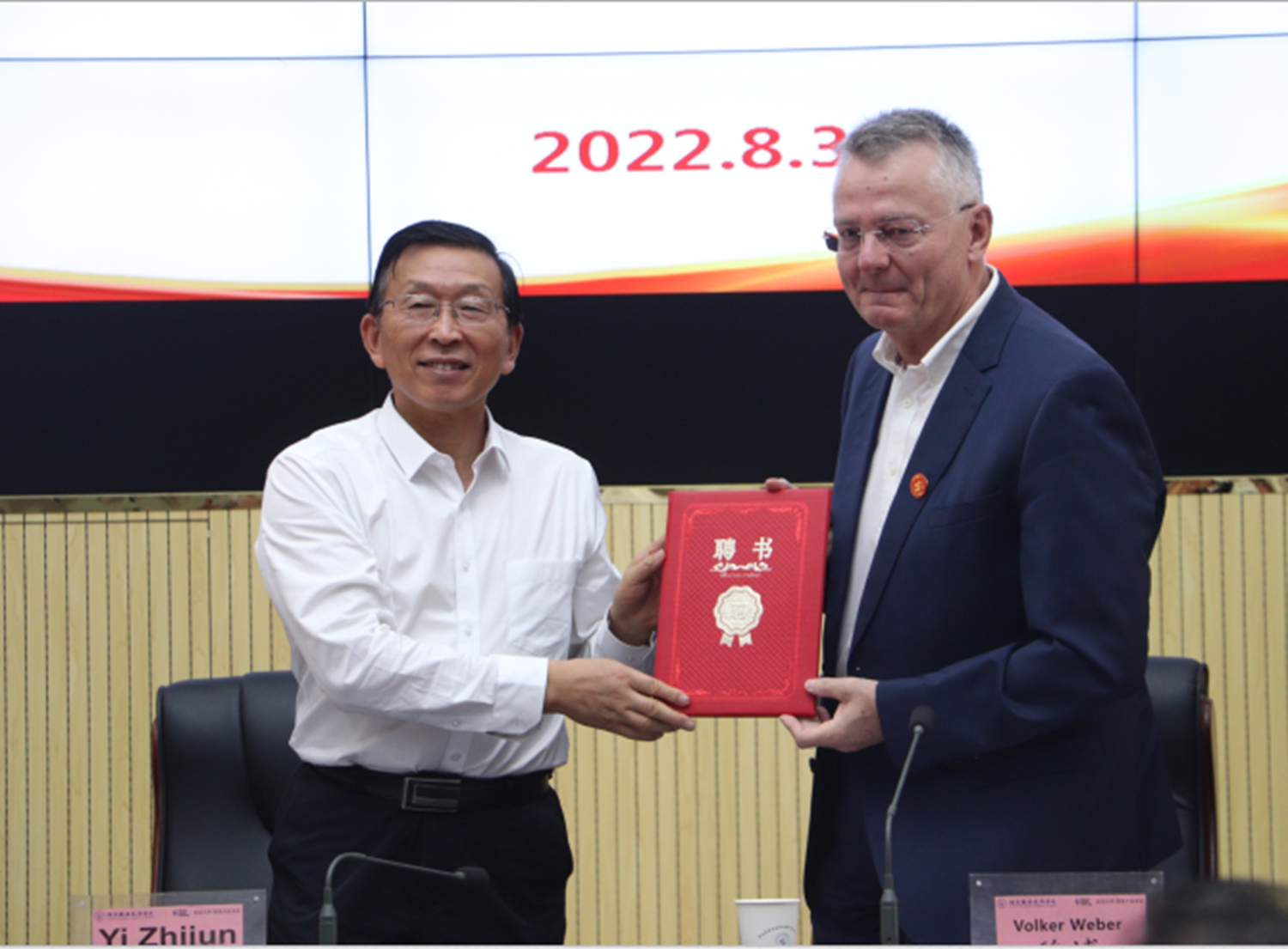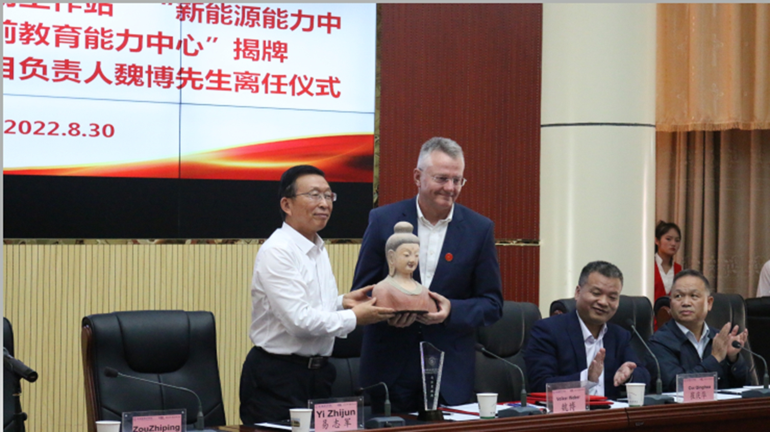 会上,易志军书记为魏博先生颁发“德国专家流动站特聘专家”聘书及“中德职业教育交流合作突出贡献奖”并赠送纪念品。(信息员:国际交流学院 高玉婕)