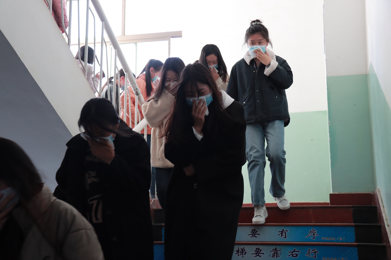 演练场景模拟学生上课时突发火情,学生在任课教师的指挥下按照就近原则从各安全出口迅速有序疏散至预定地点集合,清点人数,报备受伤情况,并对受伤人员进行紧急医疗救助。应急疏散演练结束后,相关人员详细讲解和演示了灭火器的使用方法和操作步骤,并让师生亲自体验如何正确使用灭火器进行灭火。