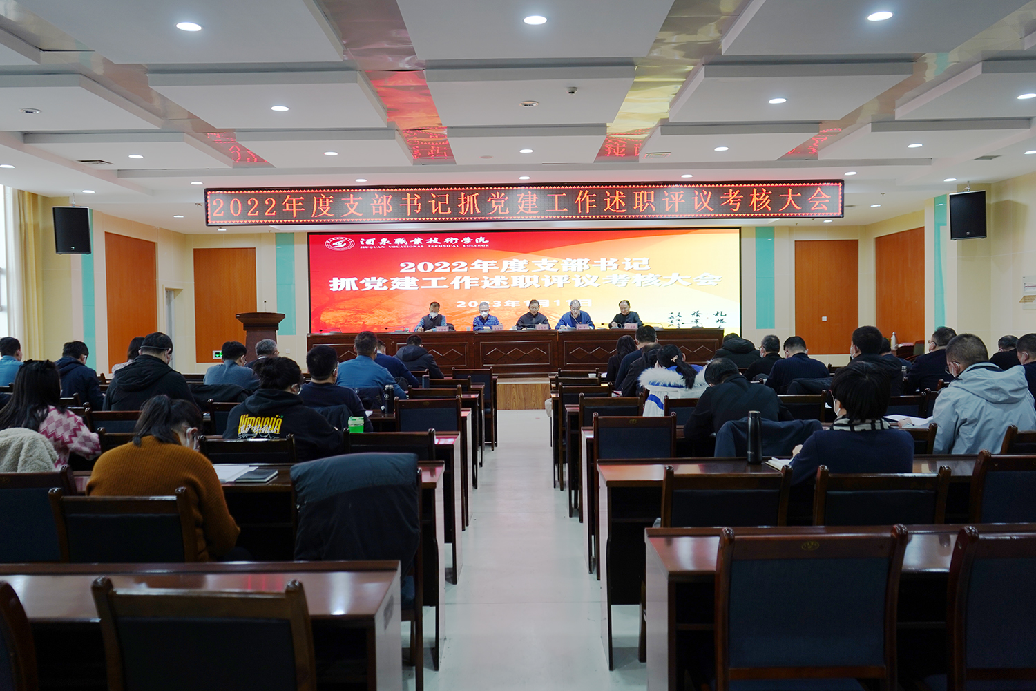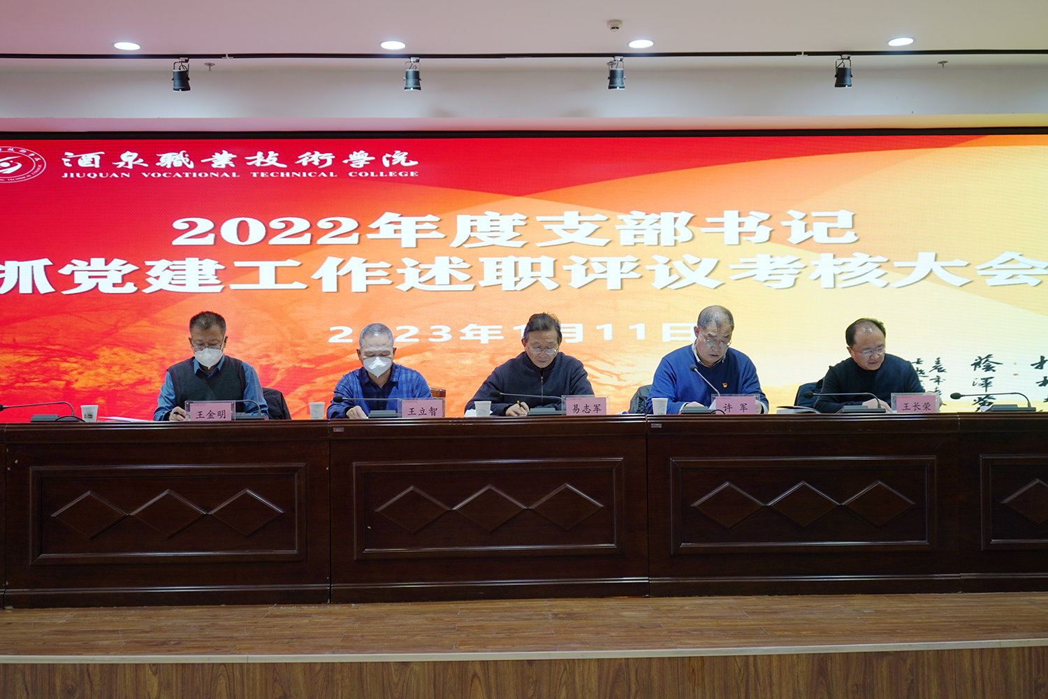 要闻快递 > 正文为深入学习贯彻党的二十大精神,提升各党支部建设质量,落实全面从严治党要求,为创建职业技术大学提供坚强组织保证。1月11日,学校召开2022年度支部书记抓党建述职评议考核会议,听取各党支部书记抓党建工作述职,总结过去一年学校党的建设工作,安排部署新一年的工作。省委教育工委督导组成员省教育厅体艺处副处长张婕、省纪委派驻省教育厅纪检监察组郭思辰及酒泉市委组织部干部二科科长程智出席会议。党委书记、校长易志军出席会议并讲话。党委副书记许军主持会议。