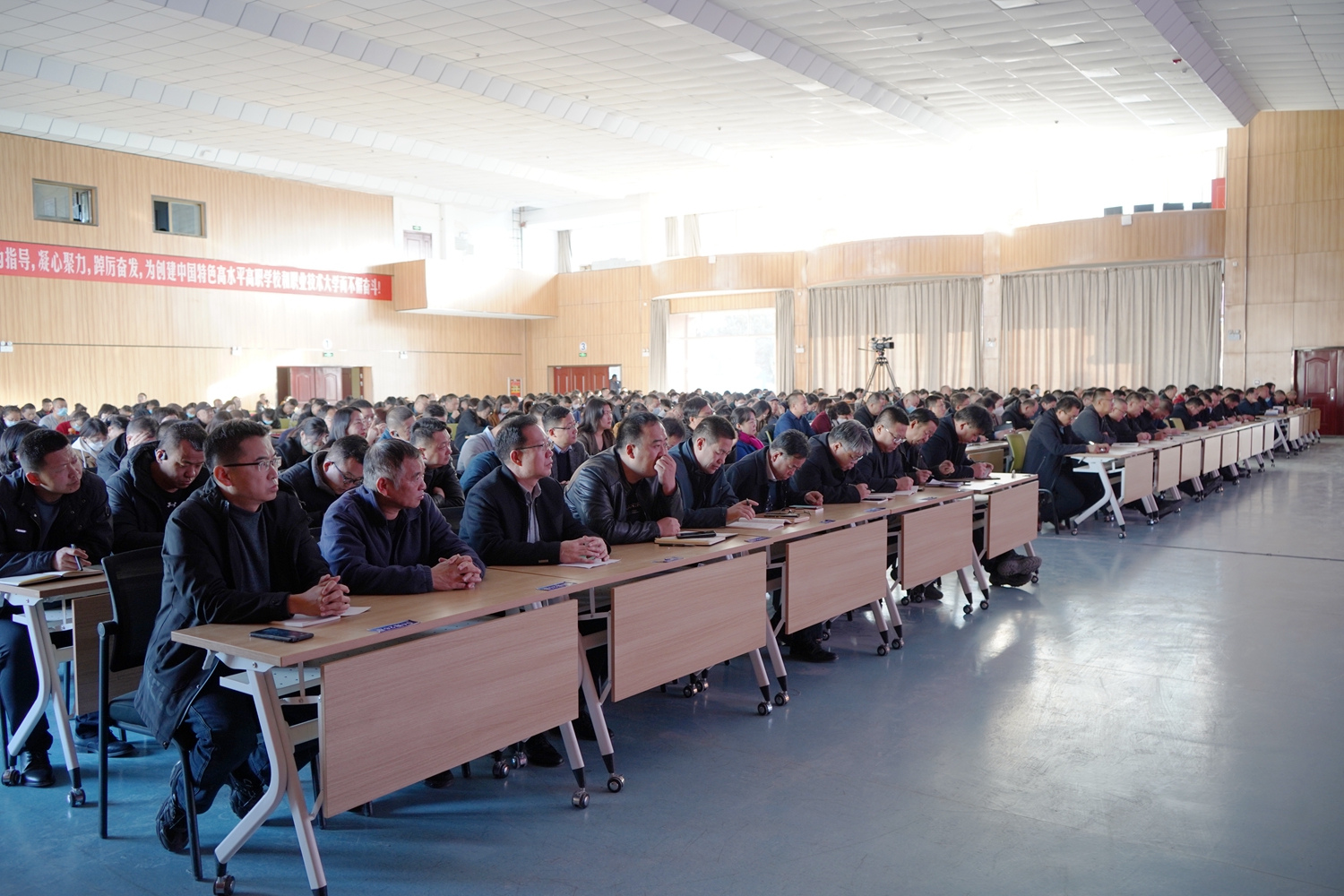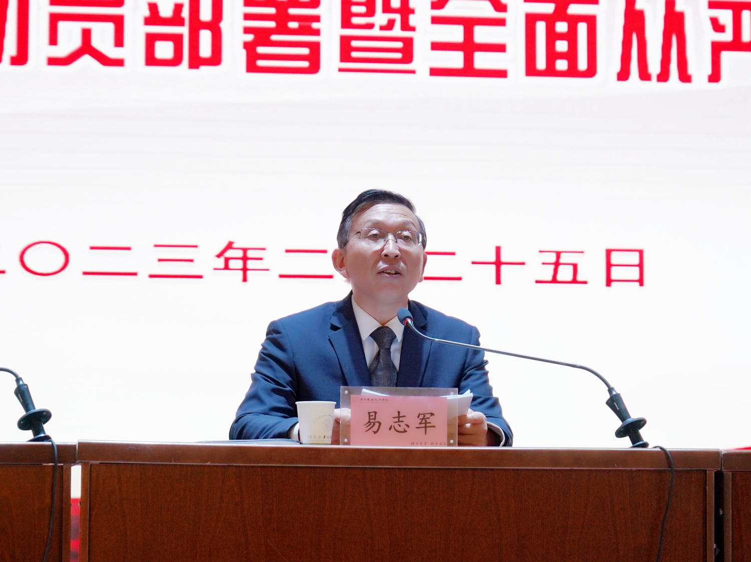 要闻快递 > 正文2月25日,学校召开“三抓三促”行动动员部署暨全面从严治党工作会议,认真贯彻落实省委、省政府“抓学习促提升、抓执行促落实、抓效能促发展”行动工作部署,全面部署启动学校“三抓三促”行动,安排部署2023年全面从严治党工作和党风廉政建设及反腐败重点工作任务。党委书记、校长易志军同志,党委副书记许军同志、党委委员、副校长王长荣同志,党委委员、宣传统战部部长王金明同志出席会议。党委副书记许军同志主持会议。全体教职工参加会议。