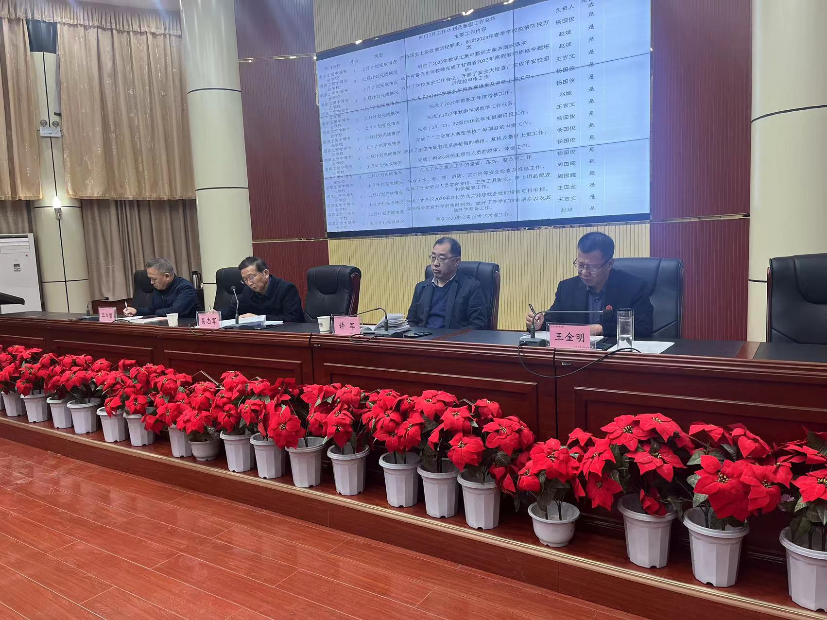 会上,集中学习了习近平总书记在中央经济工作会议上的讲话、习近平总书记就加强基础研究在中央政治局第三次集体学习时的讲话、全省和全省教育系统“抓学习促提升抓执行促落实抓效能促发展”行动动员部署会议精神及实施方案、胡昌升同志在西北师范大学建校120周年庆祝大会上的讲话以及中共酒泉市委常委会贯彻中央八项规定实施细则的实施办法。