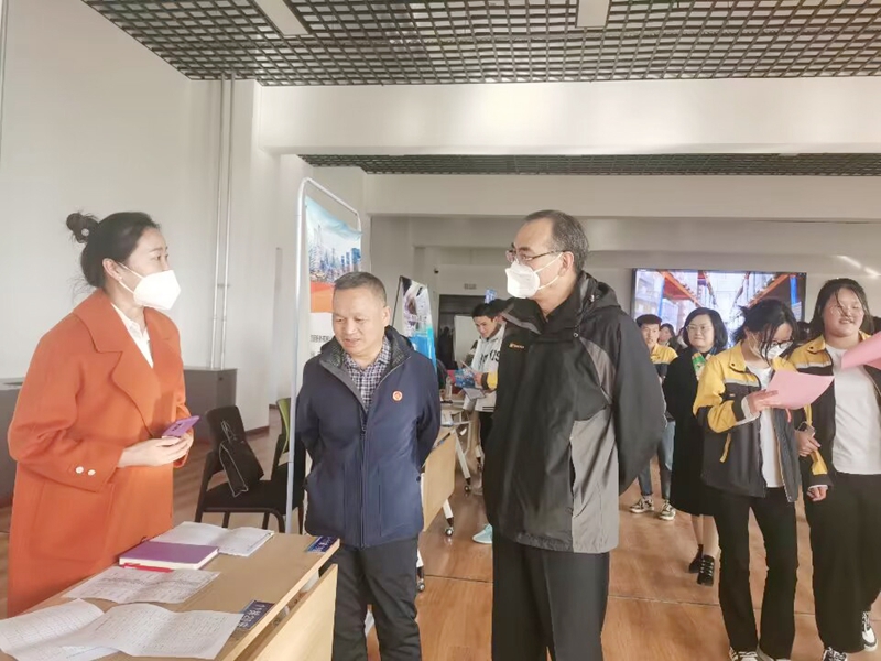 学校党委委员、副校长王立智和新疆哈密市委组织部副部长、人社局党组副书记、局长钟锐钧等领导查看了招聘会举办情况,进一步了解了企业用工要求、学生诉求等情况。