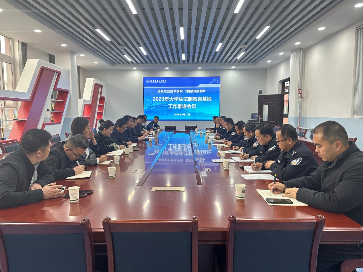 为切实发挥学校大学生法治教育基地作用,进一步提高大学生遵法、学法、守法、用法意识,弘扬法治精神,加强学校与大学生法治教育基地沟通协作,2023年4月12日我校与酒泉监狱召开了2023年大学生法治教育基地工作推进会议。学校党委委员、副校长施荣出席并主持会议,酒泉监狱党委委员、副监狱长、酒泉职业技术学院法治副校长陈虎冈出席,学校各二级学院副院长、酒泉监狱受聘法治辅导员共20人参加会议。