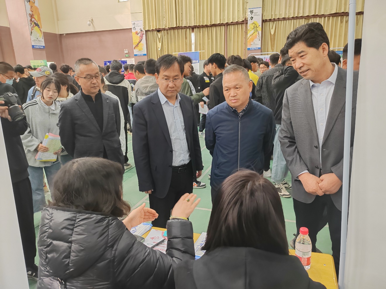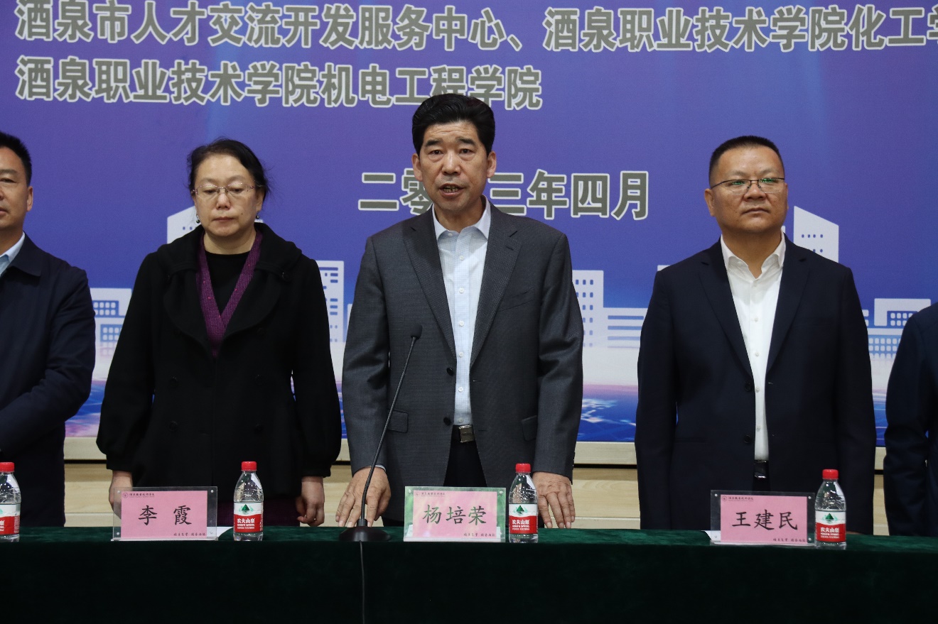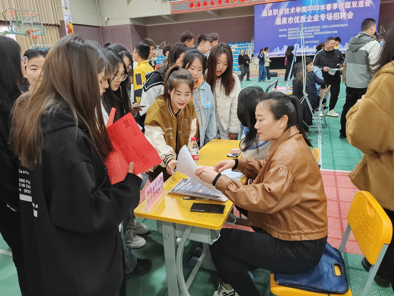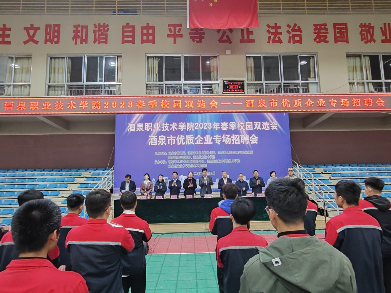 要闻快递 > 正文为全力支持酒泉地方经济建设,提高我校毕业生就业质量,实现优质就业,结合“三抓三促”行动,4月22日,由酒泉市教育局、工信局、人社局、酒泉经开区管委会和我校共同主办、酒泉市人才交流开发服务中心和我校承办的酒泉职业技术学院2023年春季校园双选会——校政企合作座谈会和酒泉市优质企业专场招聘会分别在学校格物楼和体育馆举行。