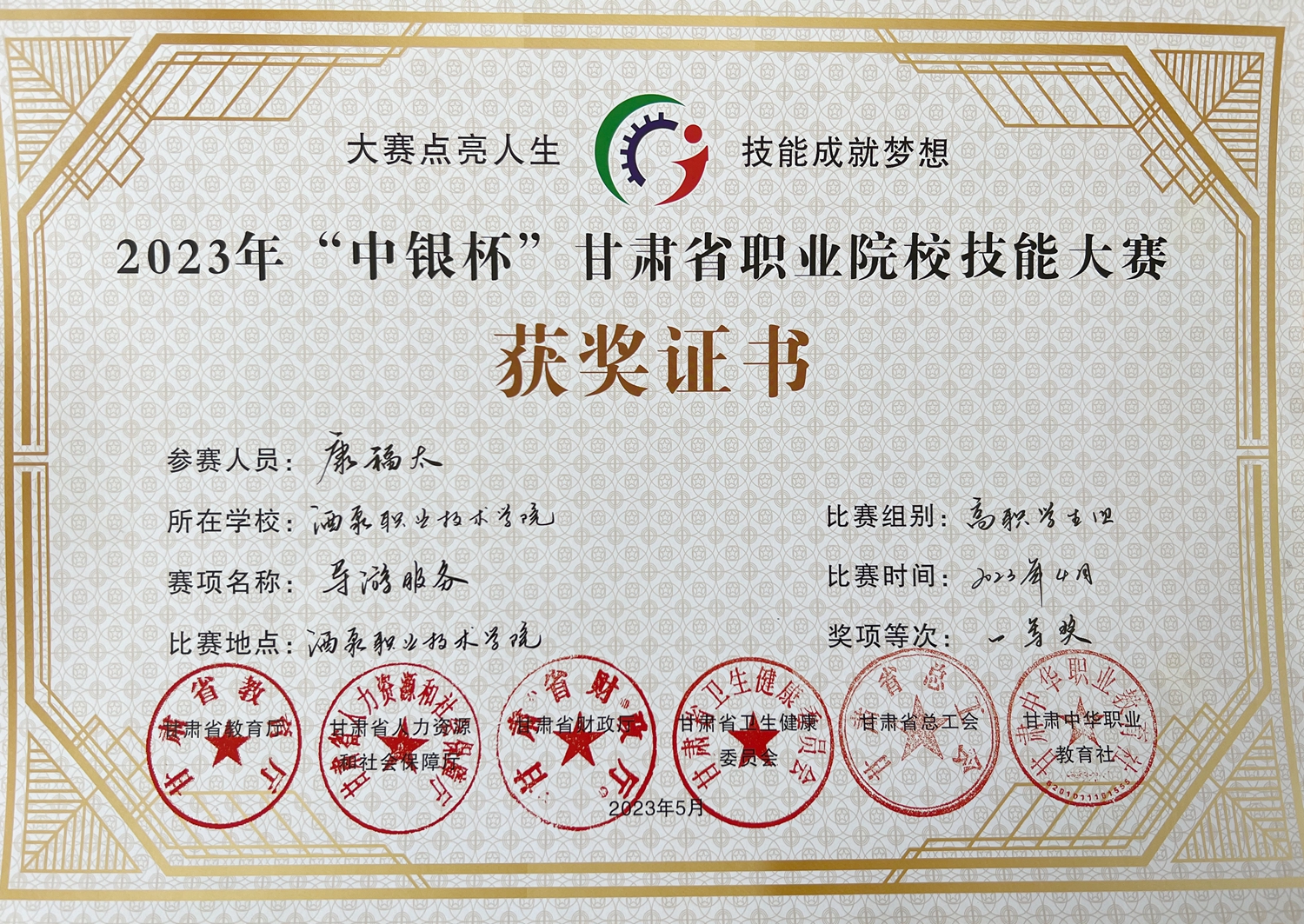 2023年“中银杯”甘肃省职业院校技能大赛圆满闭幕。本届大赛共设24个赛点,分布在兰州新区职教园区服务保障中心和11个市州。共有来自全省28所高等职业学校、3所技师学院,116所中等职业学校、30所技工学校,7767名学生、2105名教师,共计9872名师生将参加17个大类210个赛项的技能大比拼。我校师生经过紧张激烈的竞争角逐,获得学生组一等奖9项,二等奖24项,三等奖39项;教师组一等奖2项,二等奖12项,三等奖8项的优异成绩,其中烹饪、餐厅服务、导游服务、建筑工程识图、学前教育技能、风光互补发电系统安装与调试等6个赛项获得参加2023年全国职业院校技能大赛的参赛资格。