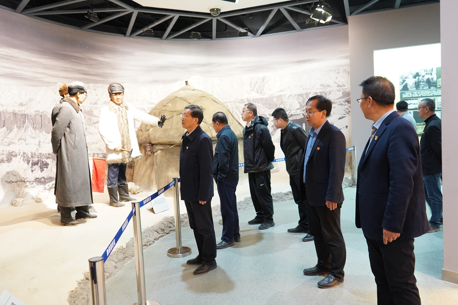 在一楼展厅,党员干部在党委书记、校长易志军的领誓下重温了入党誓词。步入展厅,一幅幅珍贵的历史图片,详实的文字资料,丰富的实物展品,清晰的历史脉络,全面展现了玉门石油人艰苦创业,拼搏奋进的历史长卷,共同追忆中国石油工业发展的光辉历史,感受革命先烈和历代中国石油人艰苦创业的拼搏与奉献。