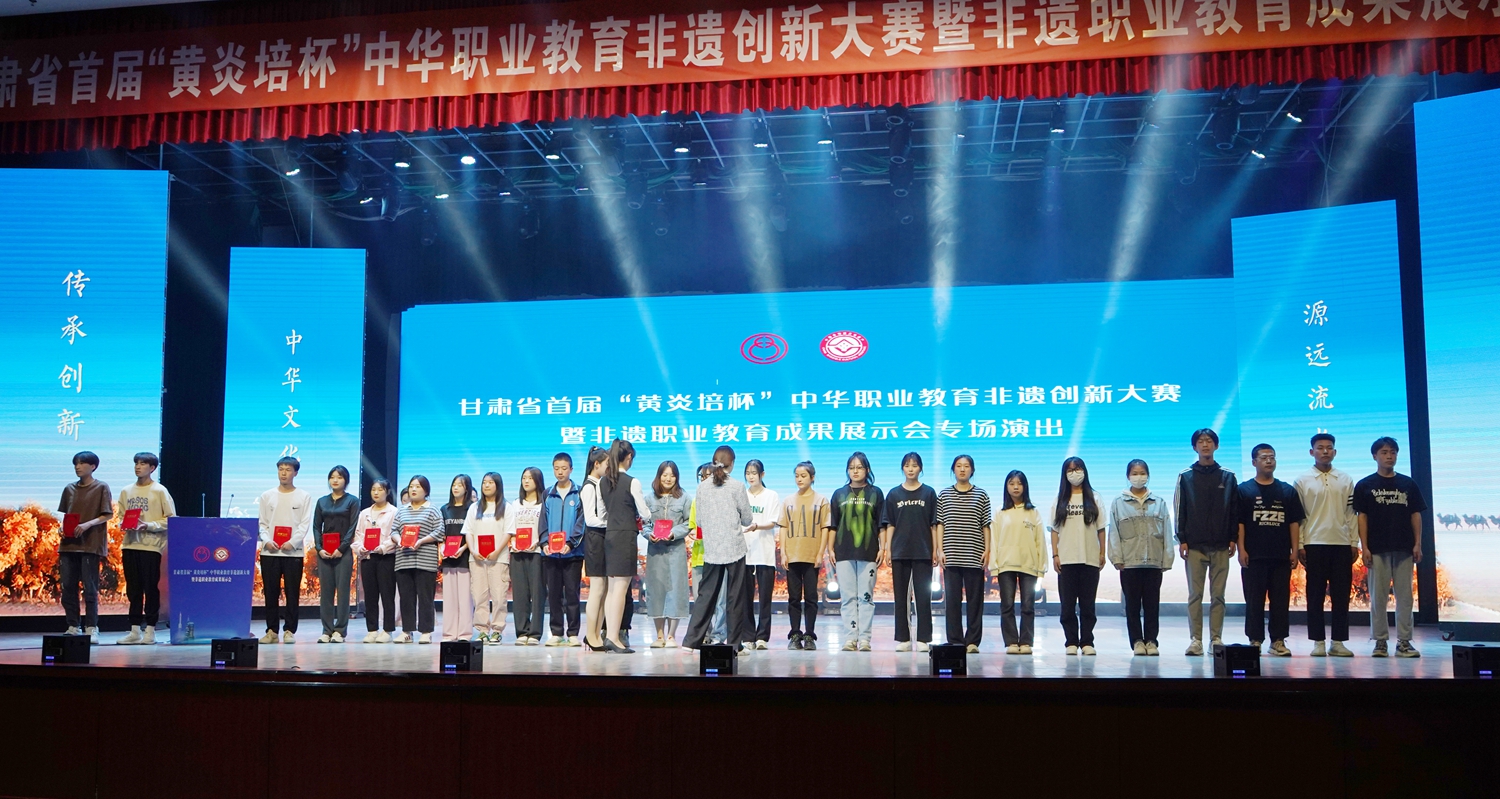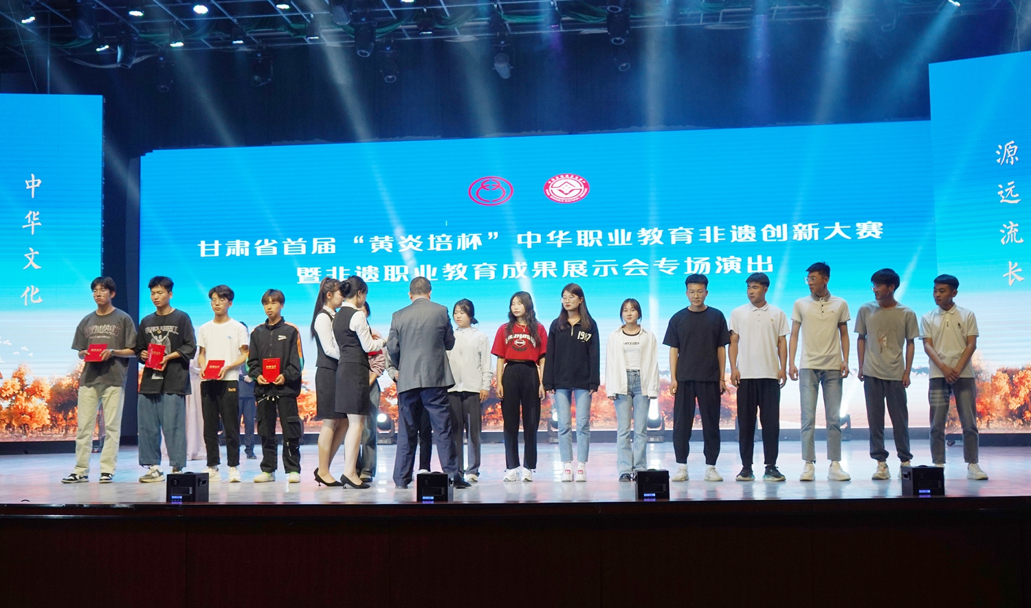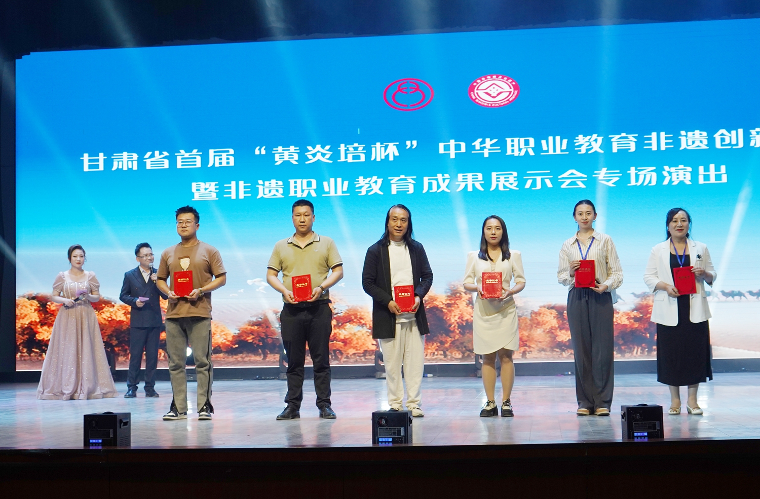 要闻快递 > 正文经过两天激烈的比赛,甘肃省首届“黄炎培杯”中华职业教育非遗创新大赛暨非遗职业教育成果展示会顺利完成各赛项任务,于5月17晚上在酒泉职业技术学院胡杨文化活动中心举办了闭幕式。