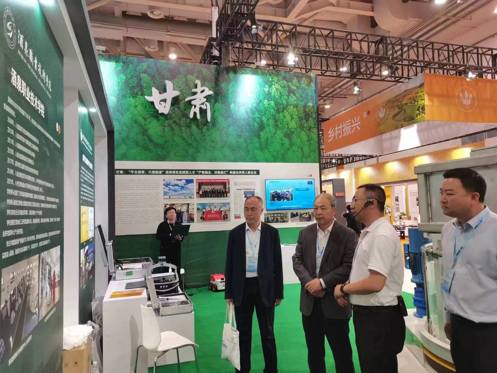 酒泉职业技术学院作为绿色低碳(甘肃)板块的牵头布展院校,以《“平台搭桥、六维融通”培养绿色低碳新人才;“产教融合、科教融汇”构建协同育人新生态》为主题,通过展示我校国家“双高计划”高水平专业群风力发电工程技术专业群与金风科技股份有限公司等头部企业在协同创新育人、教学资源共享、“双师“团队建设、工学结合实践、技术技能服务、多元协同发展等六个维度上取得的改革成果,进一步展现出我校在推进产教融合、科教融汇,实现绿色低碳产业与职业教育深度融合的过程中,专业建设助推产业升级、产业发展助力专业建设的协同育人新生态。同时我校还选送了以“戈壁石艺画”、“敦煌彩塑”为代表的非遗作品,参与了黄河战略(甘肃)板块的展出。
