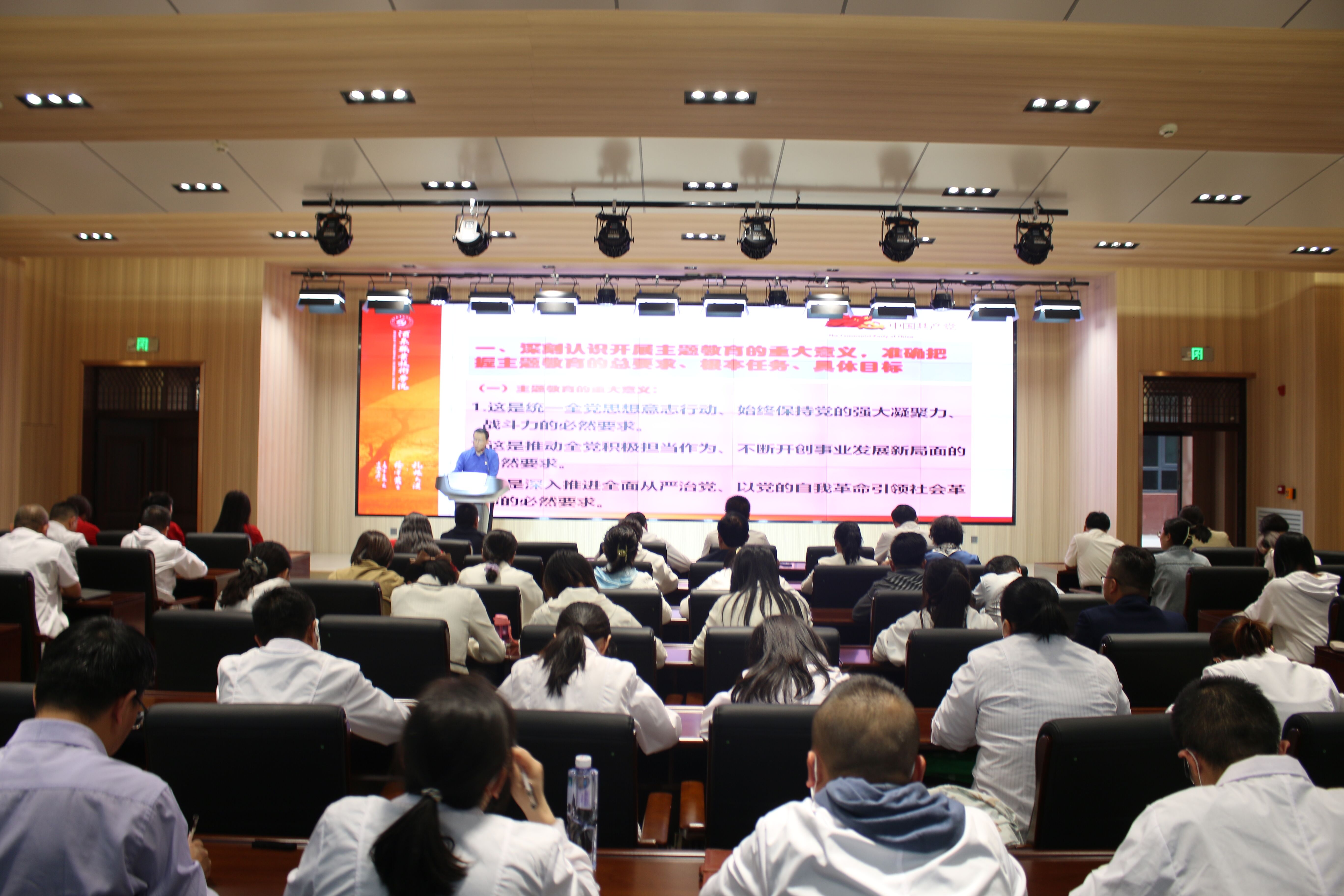 易志军书记以“理想 信念 使命”为题,首先从深刻认识开展主题教育的重要意义、总要求、根本任务等进行了详细的阐述。他强调,要坚持学思用贯通、知信行统一,把习近平新时代中国特色社会主义思想转化为坚定理想、锤炼党性和指导实践、推动工作的强大力量,努力在以学铸魂、以学增智、以学正风、以学促干方面取得实实在在的成效。接着,从准确把握理想信念的深刻内涵,坚定理想信念是共产党人安身立命的根本入手,要求各党组织和党员干部要用历史唯物主义世界观和方法论抓好思想理论建设,抓好党性教育,强化理想信念的体制机制保障,始终保持共产党人的本色,彰显共产党人的人格力量。最后,从坚定理想信念,坚守使命追求阐述,要求广大师生要把开展主题教育同深入贯彻党的二十大精神结合起来,积极行动,以实干担当促发展,高效做到专业建设匹配产业发展,人才培养质量匹配产业高质量发展要求,以创建酒泉职业技术大学为奋斗目标,以推动建设市域产教联合体为抓手,深化产教融合、科教融汇,不断提升人才培养质量,提高毕业生在酒泉的就业比率,为加快建设幸福美好新酒泉贡献酒职力量。