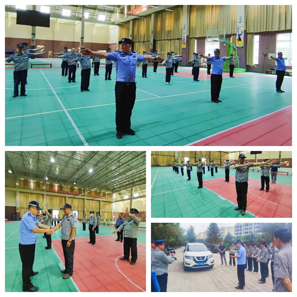 培训采取理论与实践相结合的方式进行,内容包括队列动作、交通指挥手势、突发应急情况的处置防范、周边停放车辆的秩序管理等。酒泉市公安局交通支队宣传科警官首先结合实际操作经验,依次将直行信号、左转弯信号、停止信号等八种交通指挥手势信号的动作要领逐一进行讲解和分解演示,并带领应急安稳人员从分解动作到连贯动作进行细心教导,对培训中发现的问题及时纠正,力求其手势信号的动作高度、摆头角度、眼神等做到规范标准。规范动作培训后带领全体应急安稳员在校园内对车辆如何指挥、停放进行了实践教学。最后,警官重点对盾牌、抓捕器、防爆棍等现有防爆器材的使用和突发事件应急处置注意事项等内容进行了指导培训。