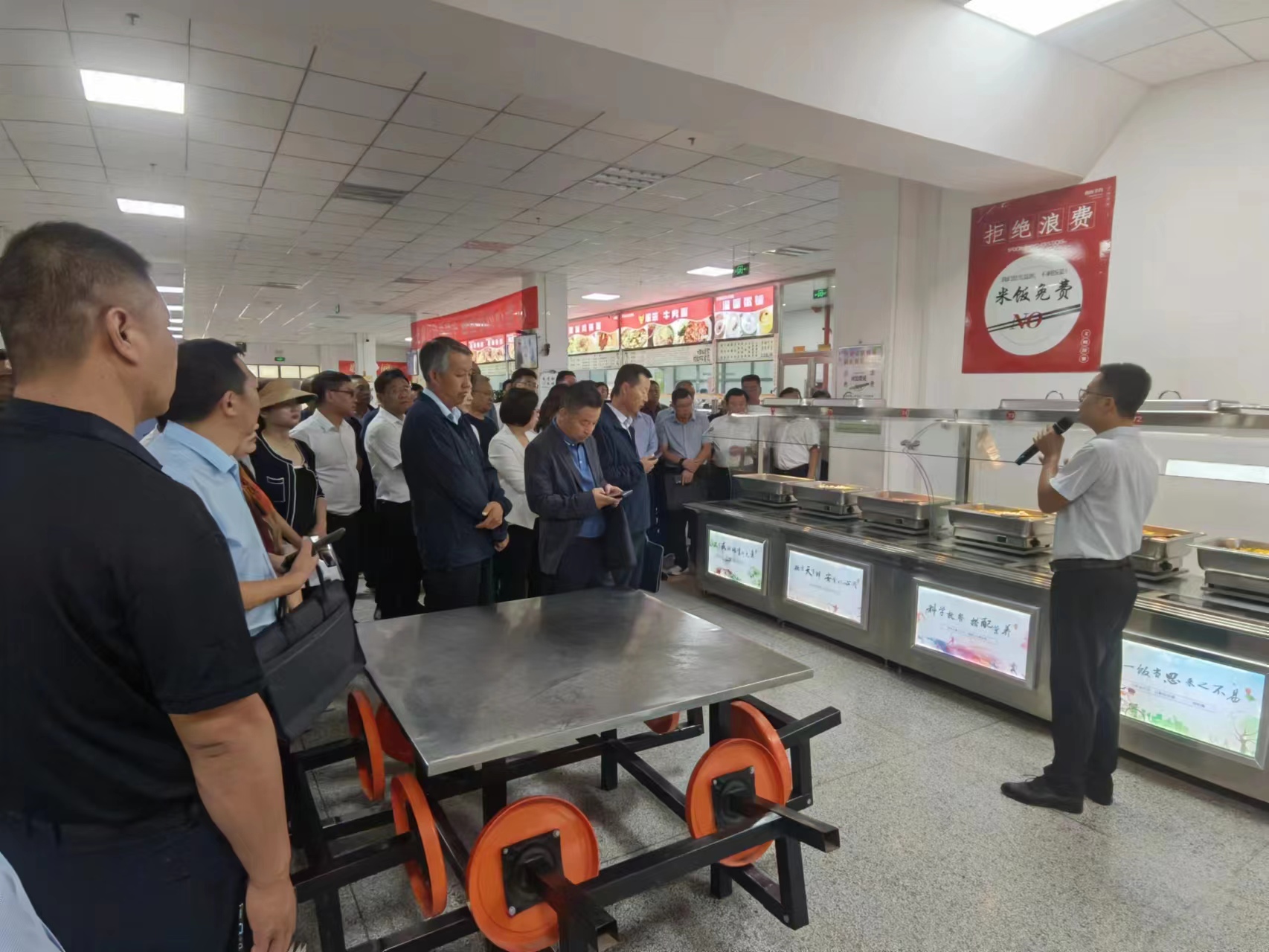 与会人员现场参观了学校飞天餐厅和洗消中心。