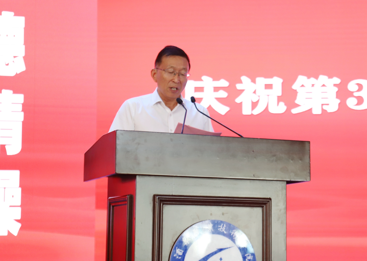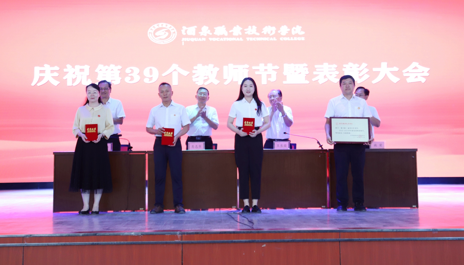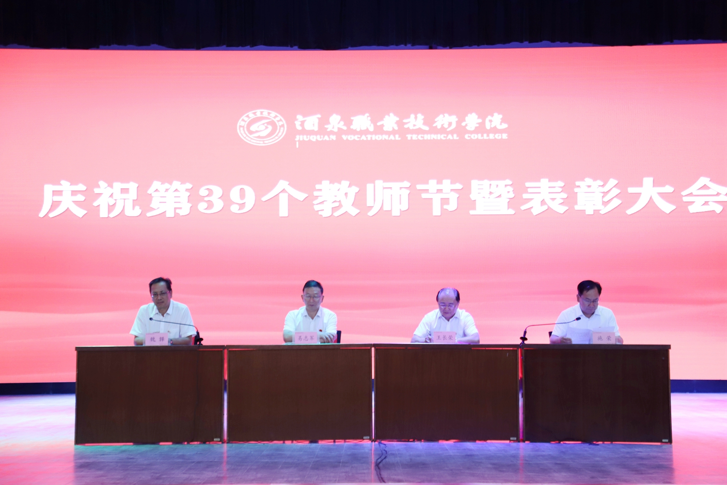 易志军致辞勉励广大教师要坚定理想信念,坚守初心使命;要涵养师德师风,秉承高尚品格;要提升育人能力,立足科技前沿;要常怀仁爱之心,践行仁爱之道。广大教师要继续坚守立德树人、教书育人的初心使命,凝心聚力、攻坚克难,以更加昂扬的奋斗姿态、更加进取的拼搏精神、更加强烈的责任担当,肩负起时代赋予的使命与责任,踏上新征程,展望新目标,奋勇拼搏、乘风破浪,共同谱写酒泉职业技术学院跨越发展的新篇章。
