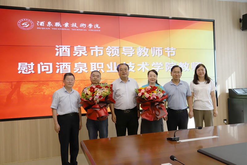在第39个教师节即将来临之际,9月8日,市人大常委会副主任杜志学、市委教育工委委员、市教育局党组成员、副局长陶英江来校慰问优秀教师代表张玉秀和王彦军,并向广大教师和教育工作者致以节日祝贺和崇高敬意。学校党委委员、副校长施荣陪同慰问。