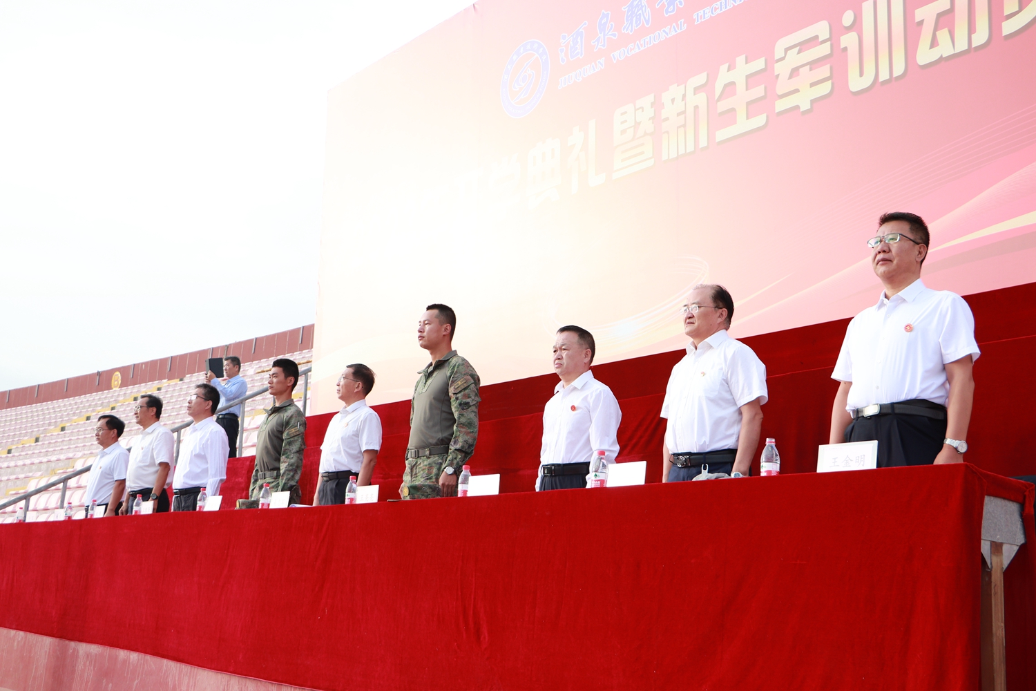 易志军为2023级新生军训团授团旗。大会在全体师生合唱校歌《我们是胡杨的种子》中圆满结束。