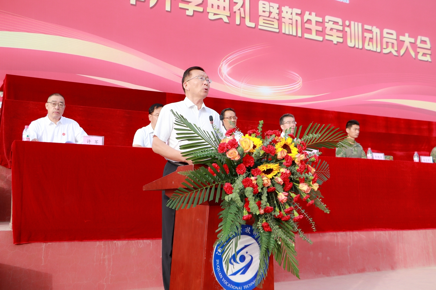 易志军致辞,希望同学们以诚信立德,践行社会主义核心价值观,在人生中涵养大我之情怀;以自信立身,取得德智体美劳全面发展,在大学里激扬青春风采;以笃信立业,成为制造业强国的能工巧匠,铸造技能硬核,珍惜大学的美好时光,做一名诚信、自信、笃信的酒职人,行稳致远,勇担新时代的使命和责任,书写无愧于壮丽青春的人生篇章。